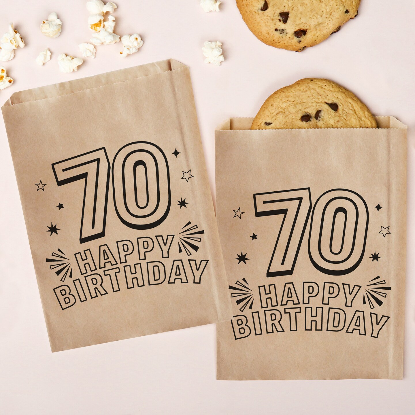 Big Dot of Happiness Adult 70th Birthday Kraft Brown Paper Treat Bags, Birthday Individual Greaseproof Brown Paper Sandwich Cookie Bags - 25 Count