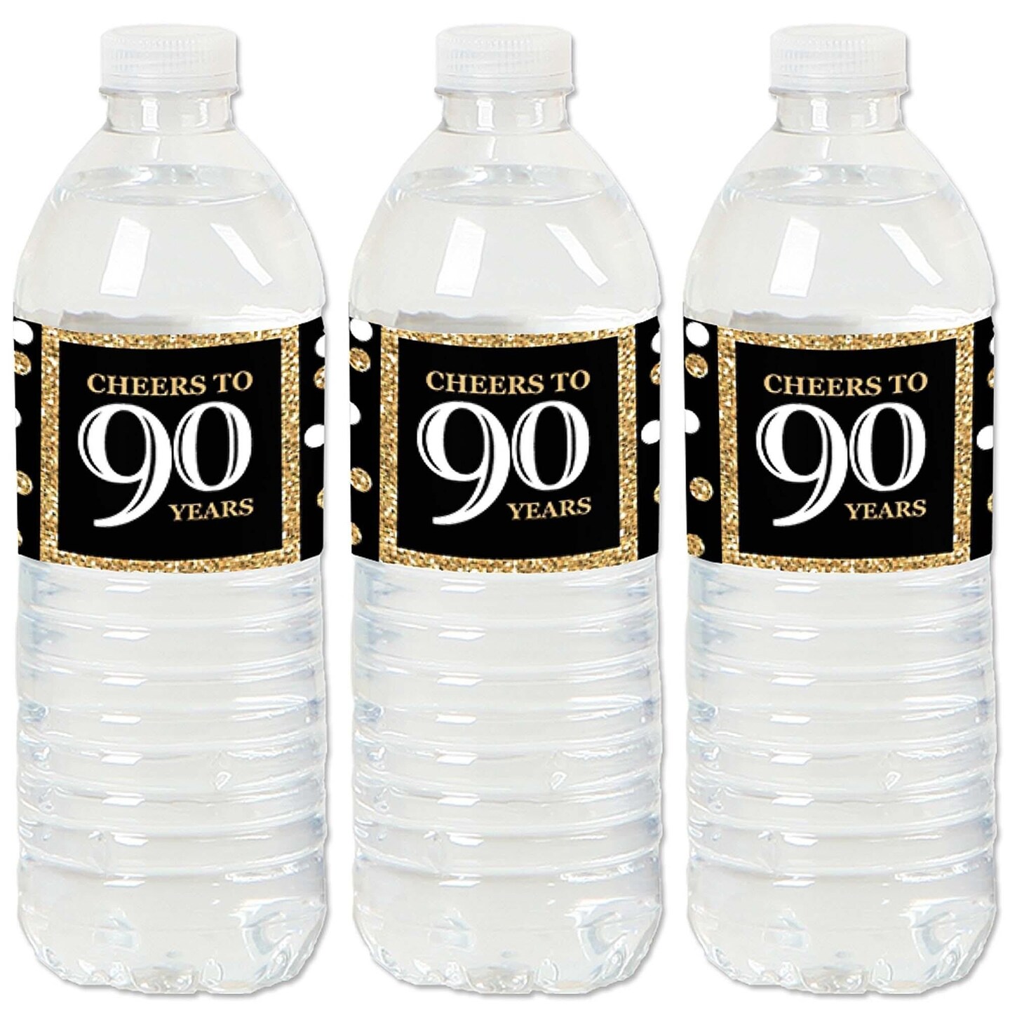 Big Dot of Happiness Adult 90th Birthday - Gold - Birthday Party Water Bottle Sticker Labels - Set of 20