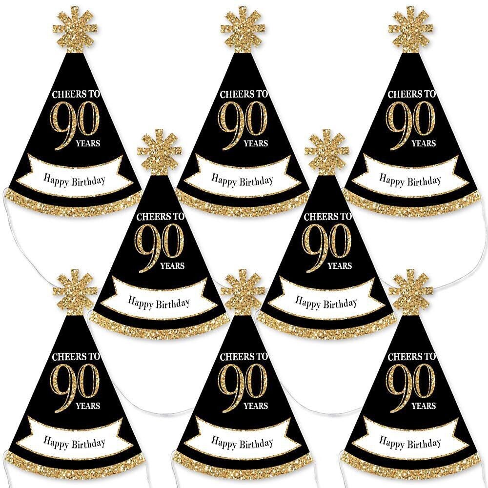 Big Dot of Happiness Adult 90th Birthday - Gold - Mini Cone Birthday Party Hats - Small Little Party Hats - Set of 8