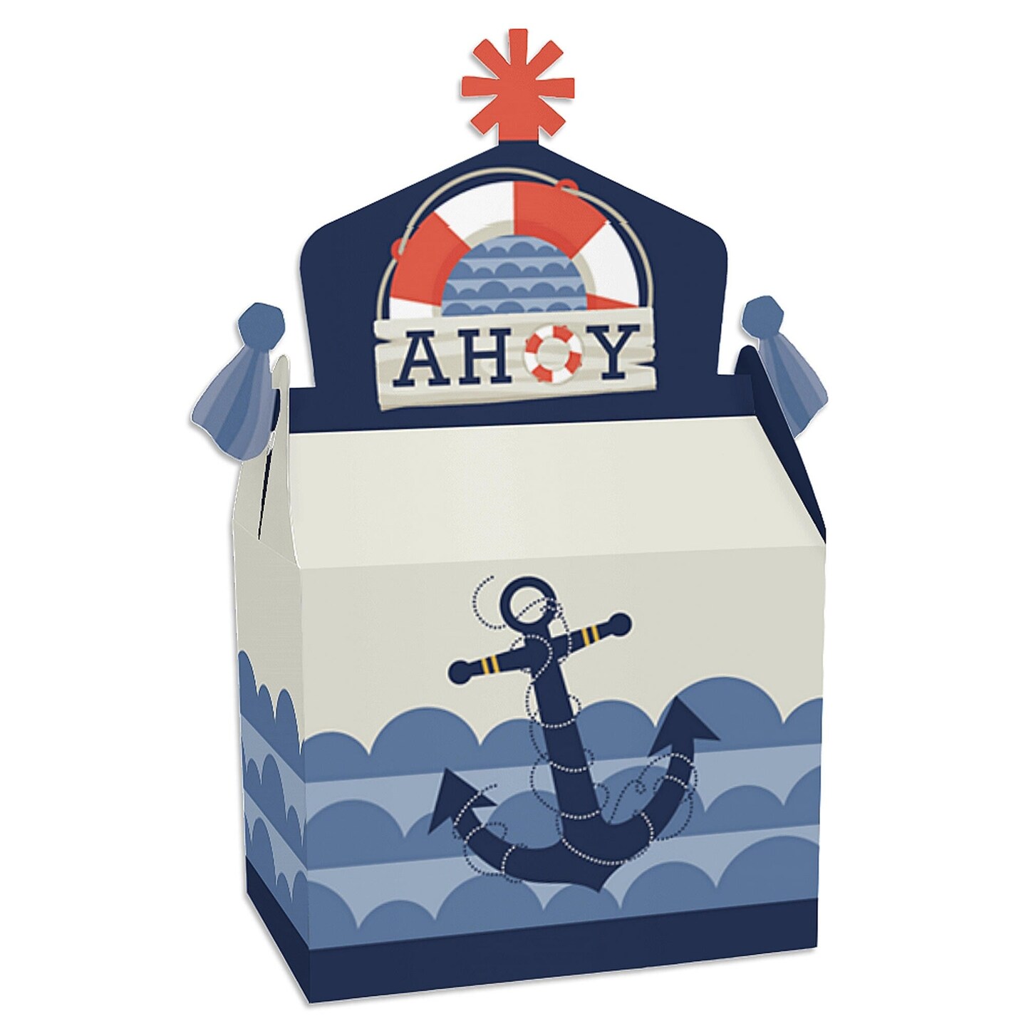 Big Dot of Happiness Ahoy - Nautical - Treat Box Party Favors - Baby Shower or Birthday Party Goodie Gable Boxes - Set of 12