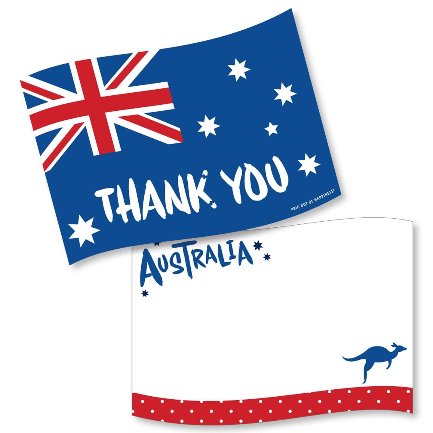 Big Dot of Happiness Australia Day - Shaped Thank You Cards - G'Day Mate Aussie Party Thank You Note Cards with Envelopes - Set of 12