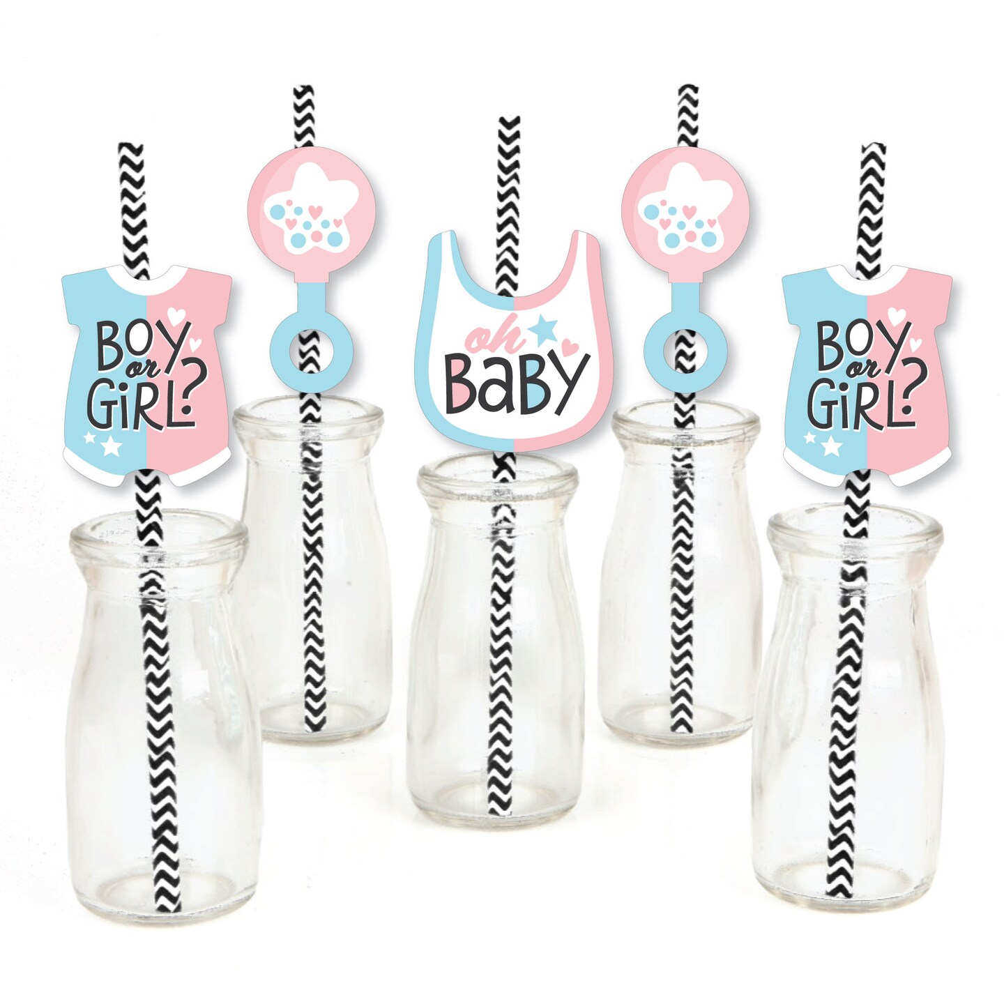 Big Dot of Happiness Baby Gender Reveal - Paper Straw Decor - Team Boy or Girl Party Striped Decorative Straws - Set of 24