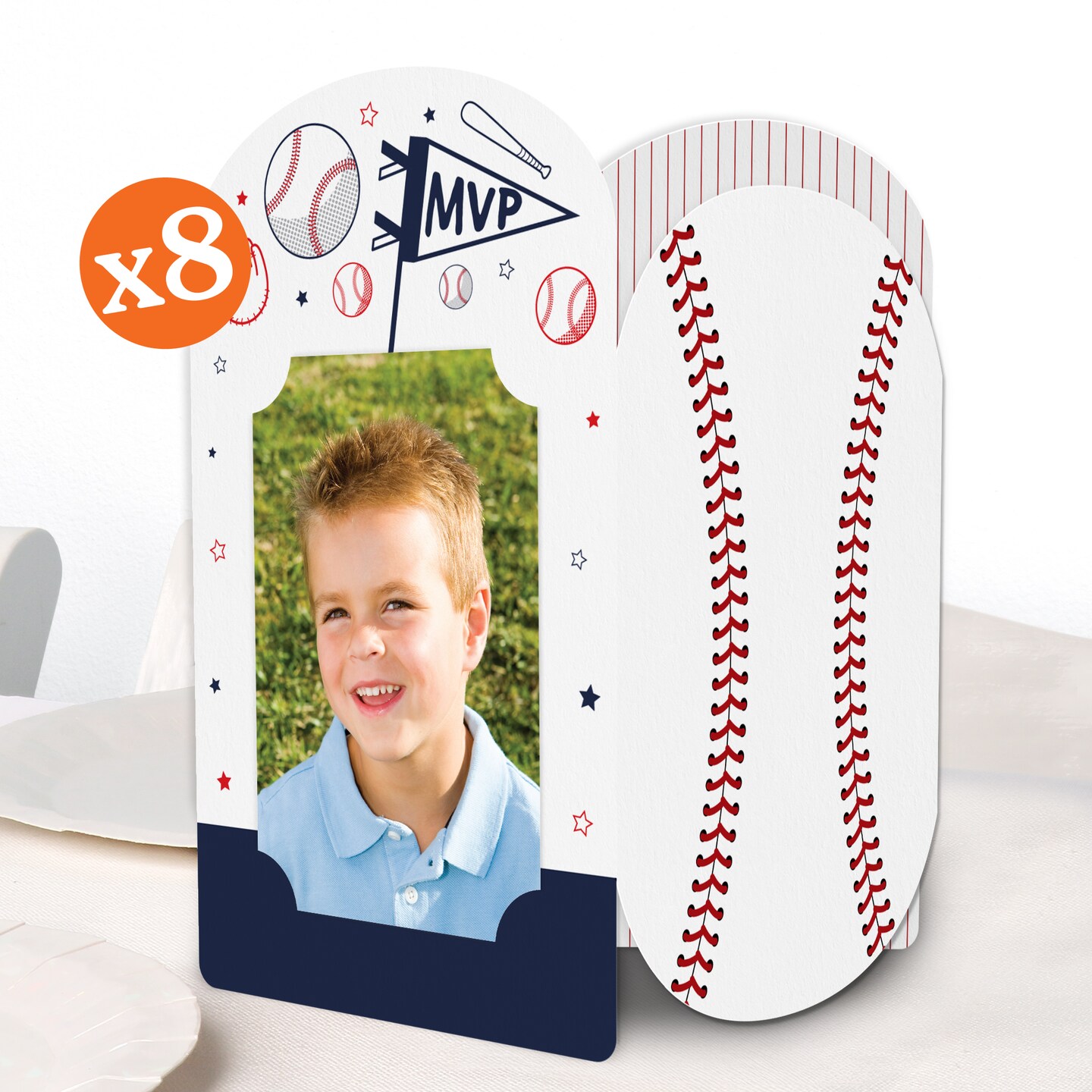 Big Dot of Happiness Baseball Photo Holder Centerpieces, 4x6 Picture Display Box, Sports Table Decoration for Kids Birthday Decor, 8 Count