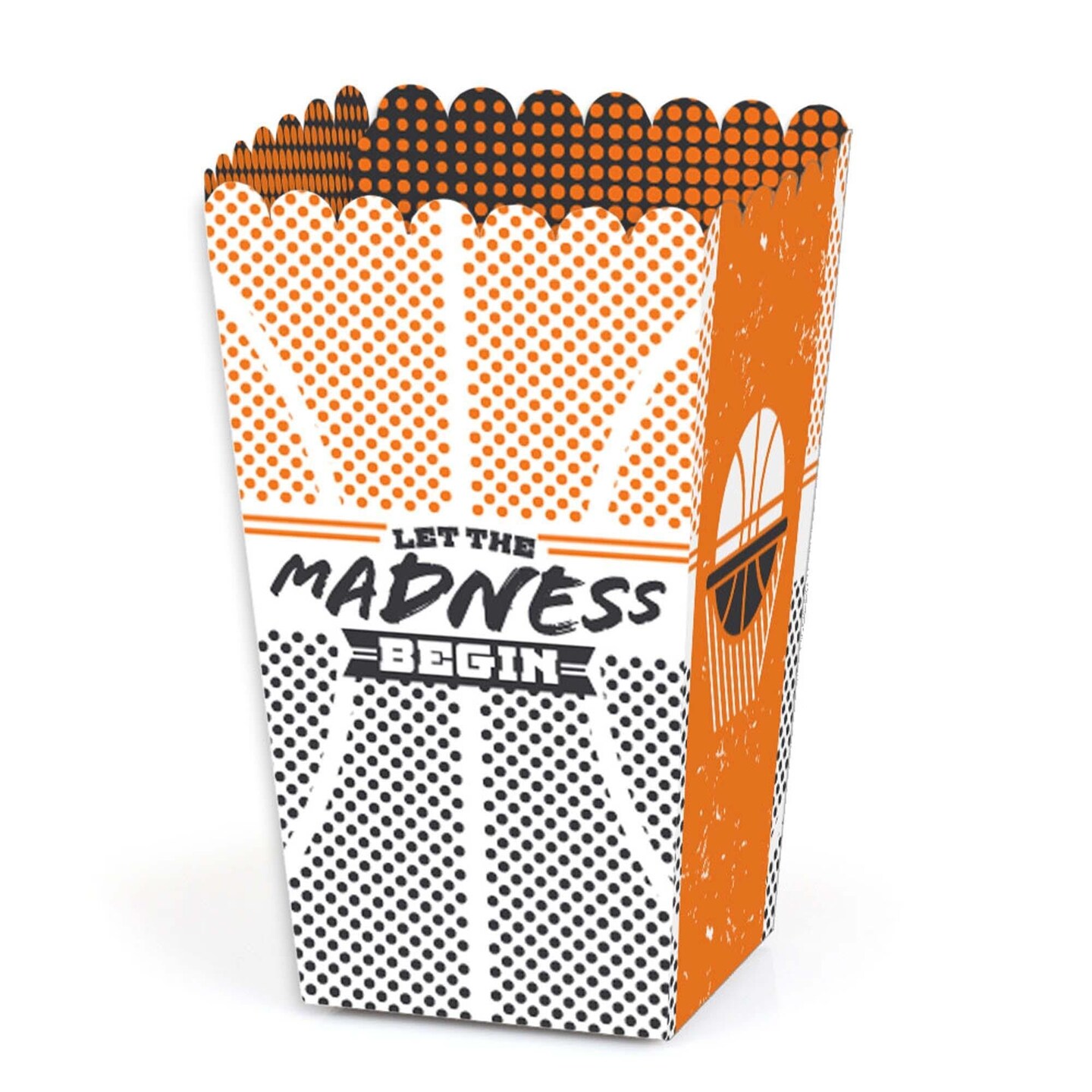 Big Dot of Happiness Basketball - Let The Madness Begin - College Basketball Party Favor Popcorn Treat Boxes - Set of 12