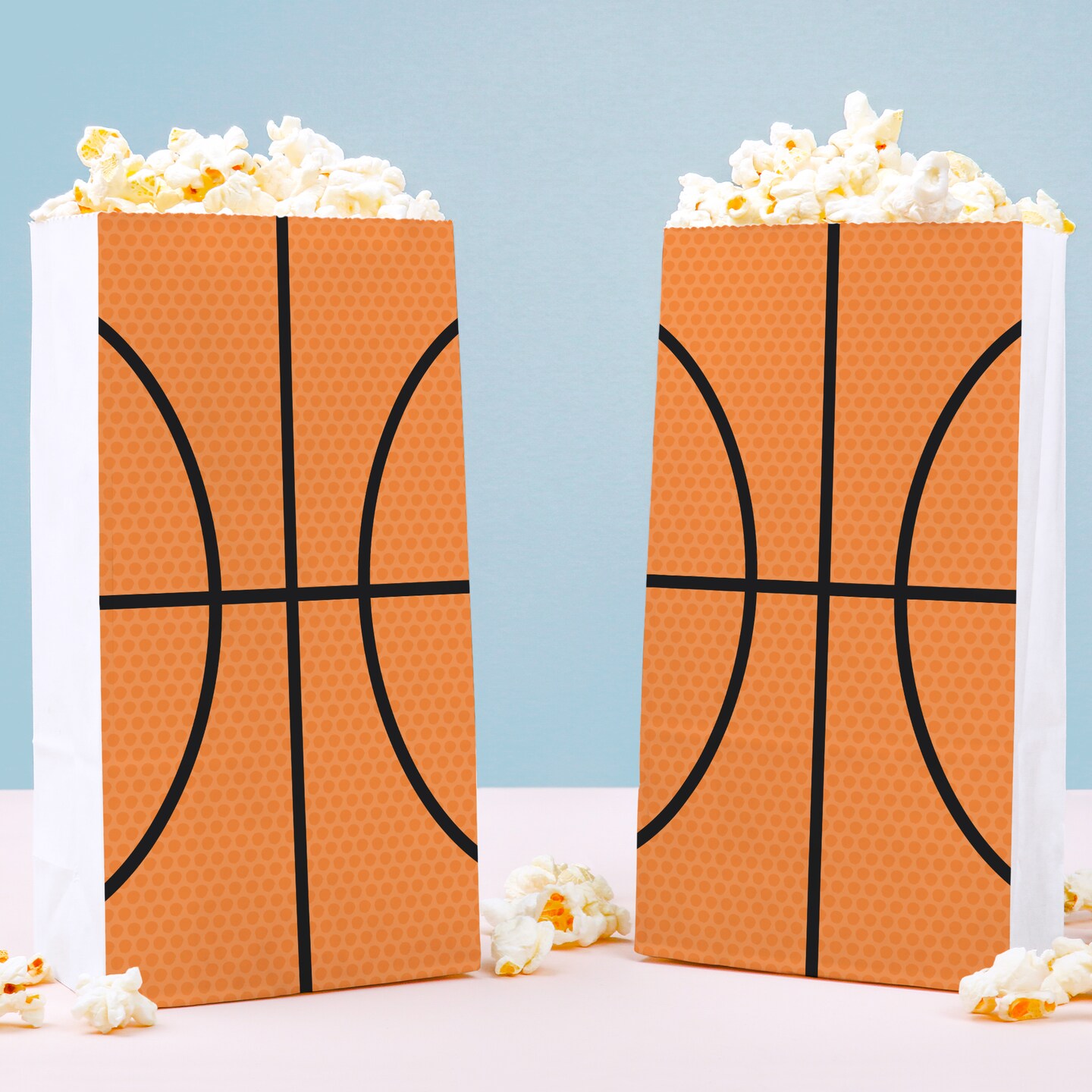 Big Dot of Happiness Basketball Popcorn Bags, Kids Sports Birthday Party Favor Snack Treats, Free-Standing Individual White Paper Bags - 25 Count