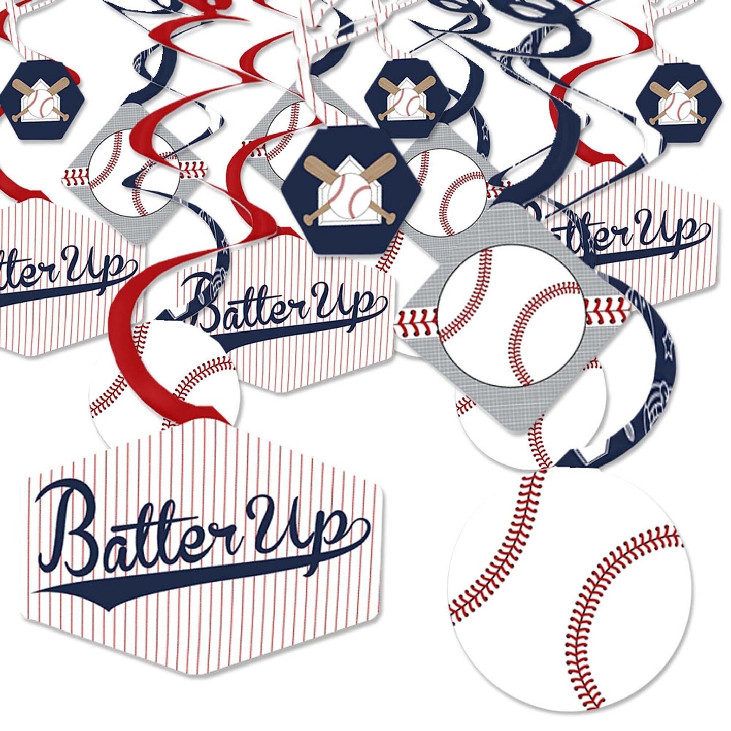 Big Dot of Happiness Batter Up - Baseball - Baby Shower or Birthday Party Hanging Decor - Party Decoration Swirls - Set of 40