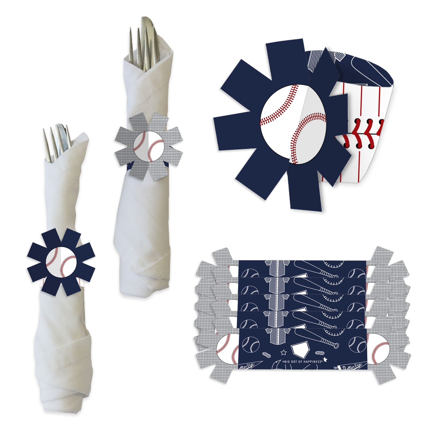 Big Dot of Happiness Batter Up - Baseball - Baby Shower or Birthday Party Paper Napkin Holder - Napkin Rings - Set of 24