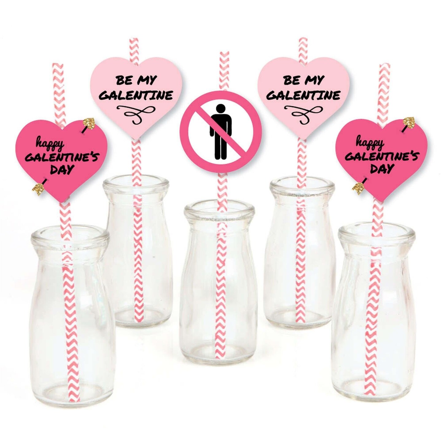 Big Dot of Happiness Be My Galentine - Paper Straw Decor - Galentine's and Valentine's Day Party Striped Decorative Straws - Set of 24