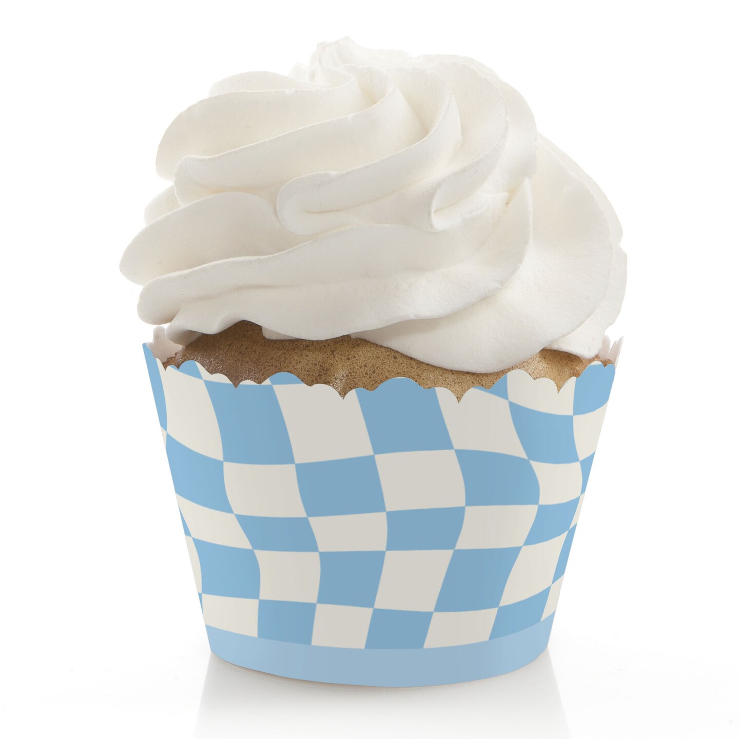 Big Dot of Happiness Blue Checkered Party - Decorations - Party Cupcake Wrappers - Set of 12