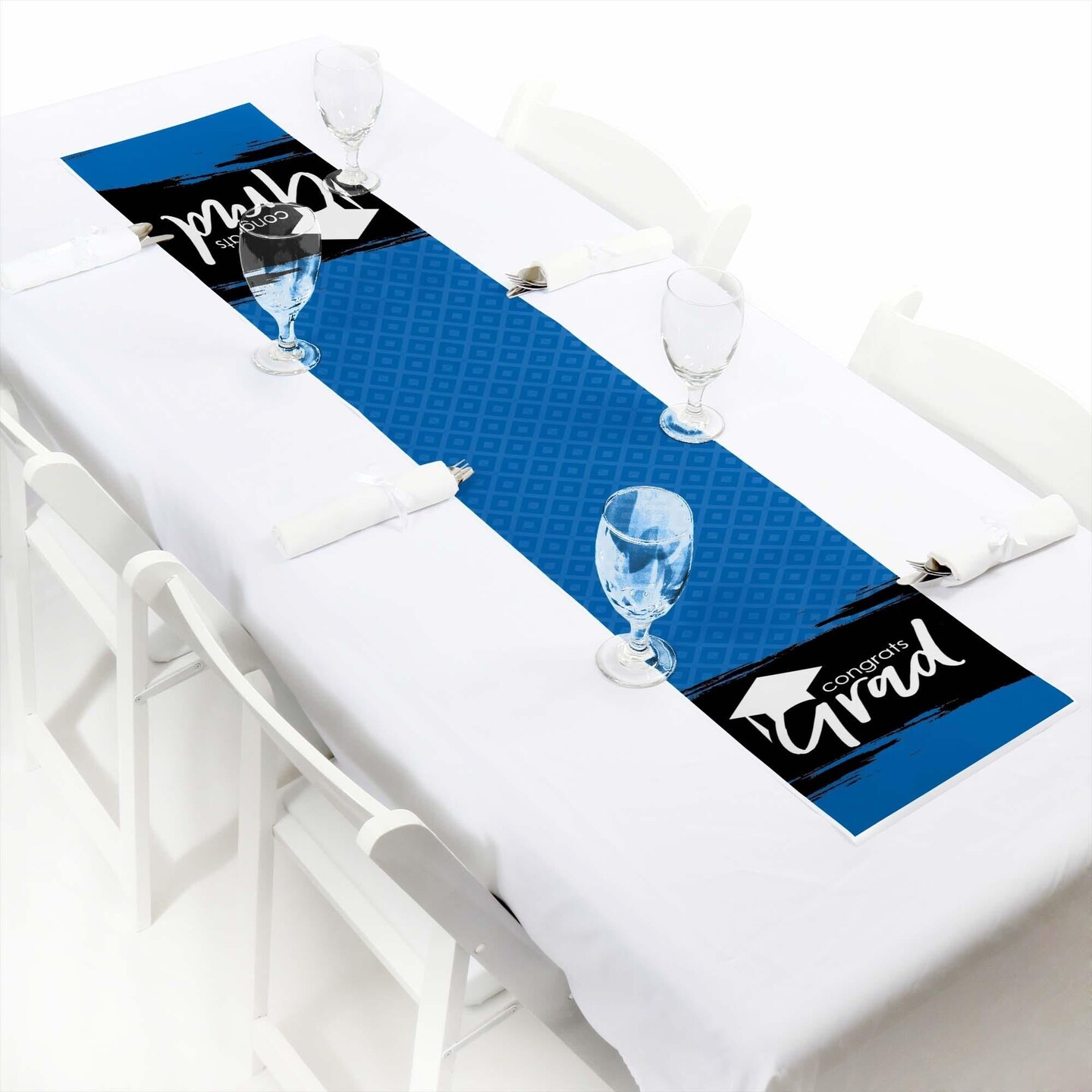 Big Dot of Happiness Blue Grad - Best is Yet to Come - Petite Royal Blue Graduation Party Paper Table Runner - 12 x 60 inches