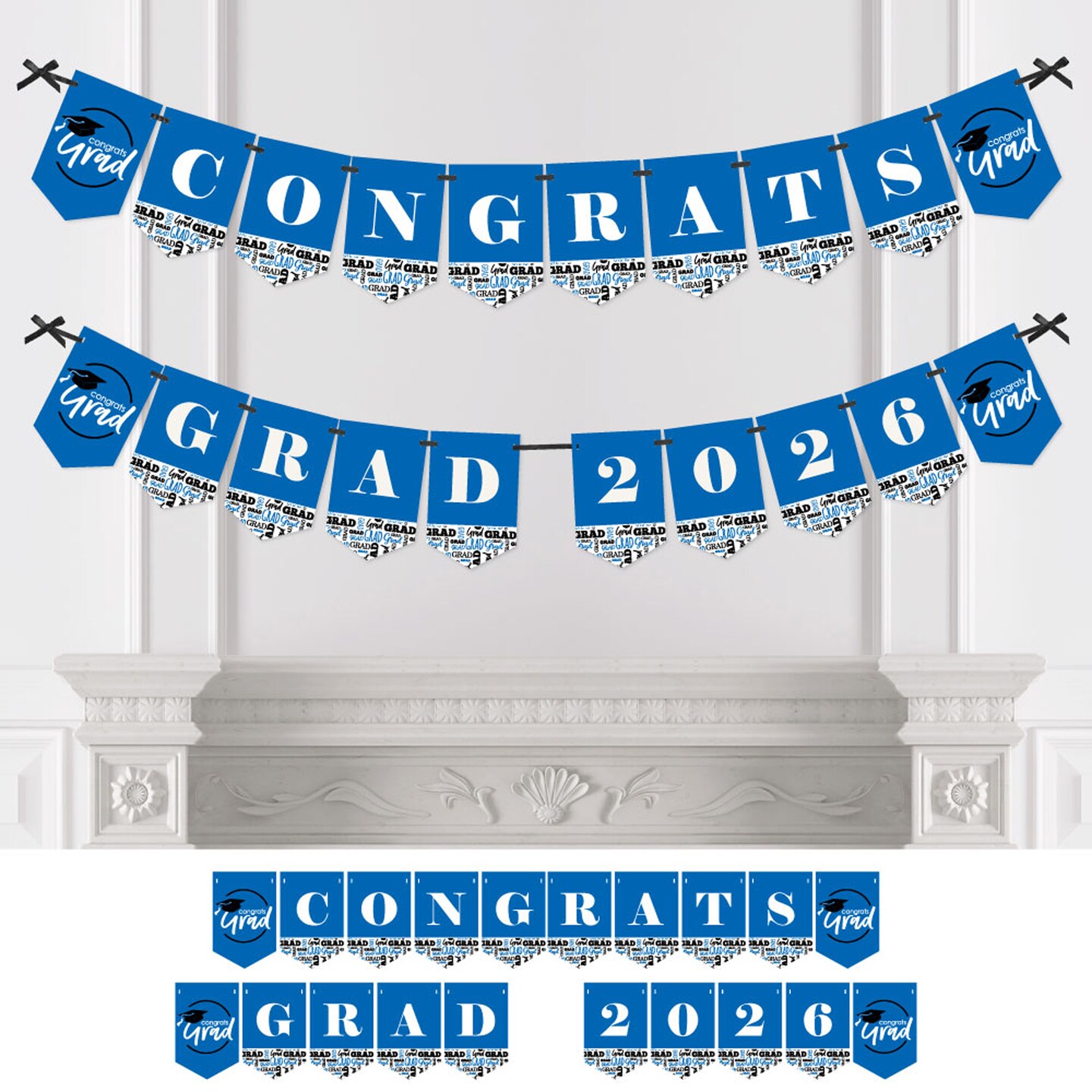 Big Dot of Happiness Blue Graduation Bunting Banner - Party Decorations - Congrats Grad 2026