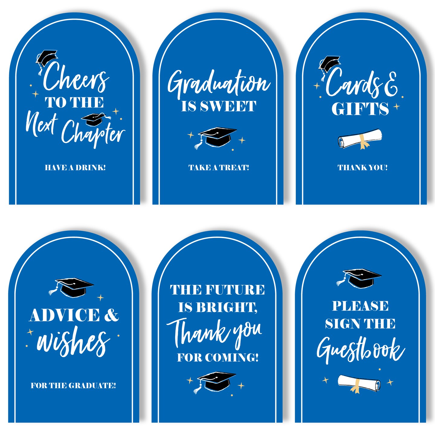 Big Dot of Happiness Blue Graduation Party Signs with Stand Set, Table Sign Bundle Food, Drinks, Cards Gifts, Guestbook, Advice Wishes, Favors, 6 Ct