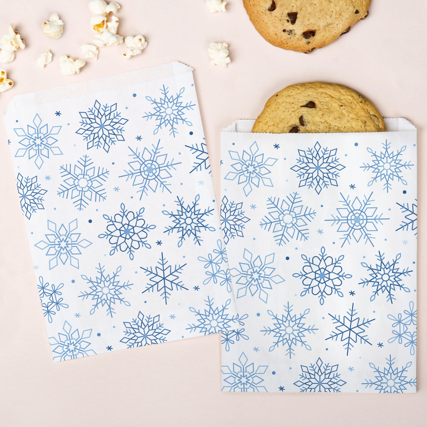 Big Dot of Happiness Blue Snowflakes Paper Treat Bags, Holiday Party Individual Candy Snack Favors, Greaseproof White Sandwich Cookie Bags - 25 Count