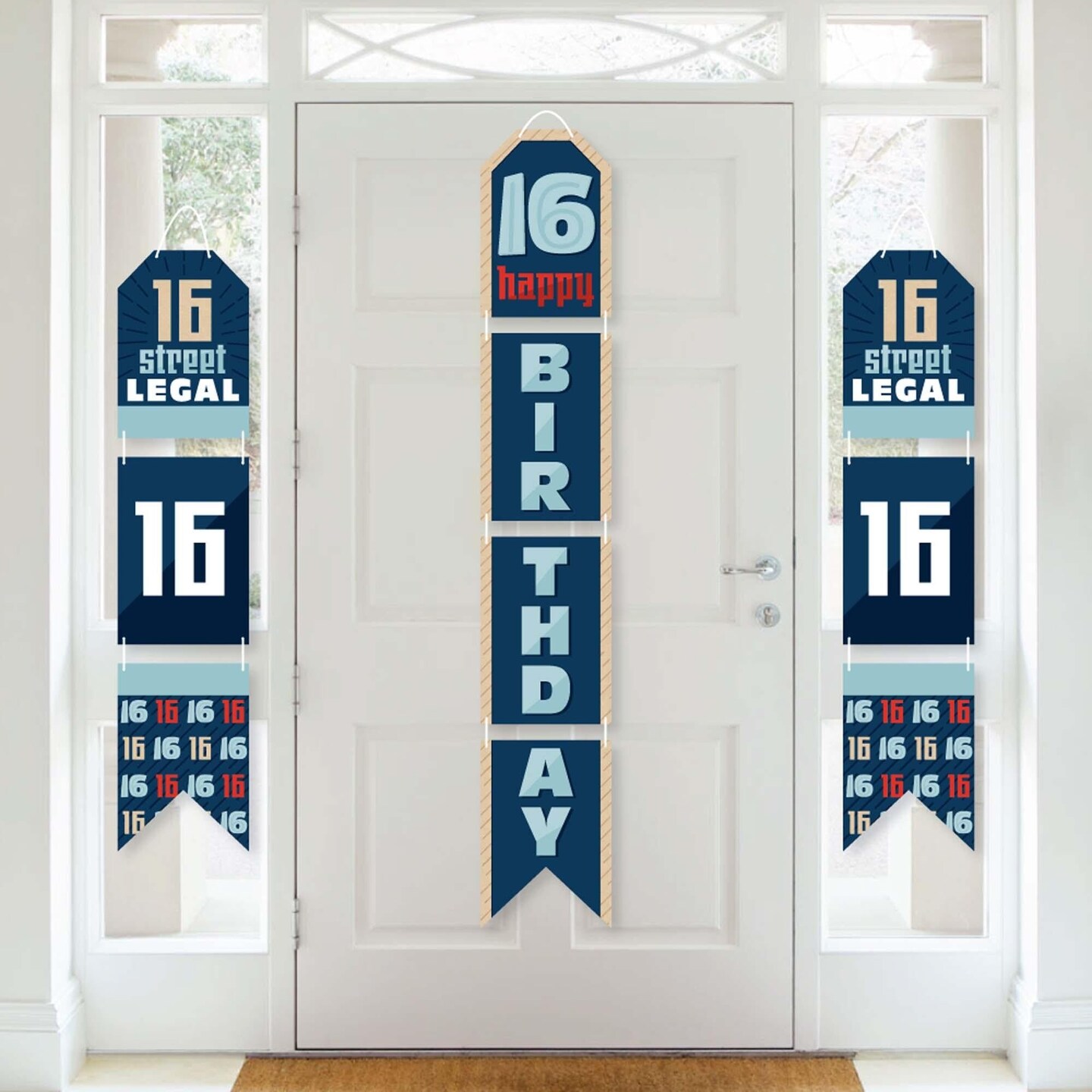 Big Dot of Happiness Boy 16th Birthday - Hanging Vertical Paper Door Banners - Sweet Sixteen Birthday Party Wall Decoration Kit - Indoor Door Decor