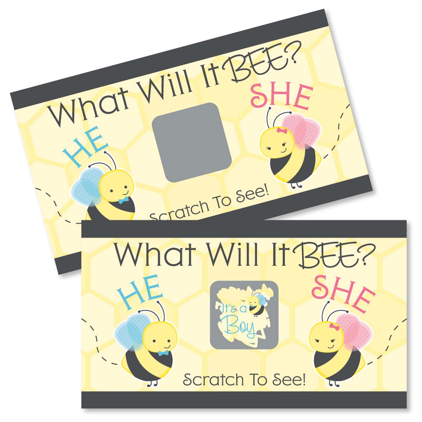 Big Dot of Happiness Boy Bee Gender Reveal - What Will It Bee Gender Reveal Scratch Off Cards - Baby Shower Game - 22 Count
