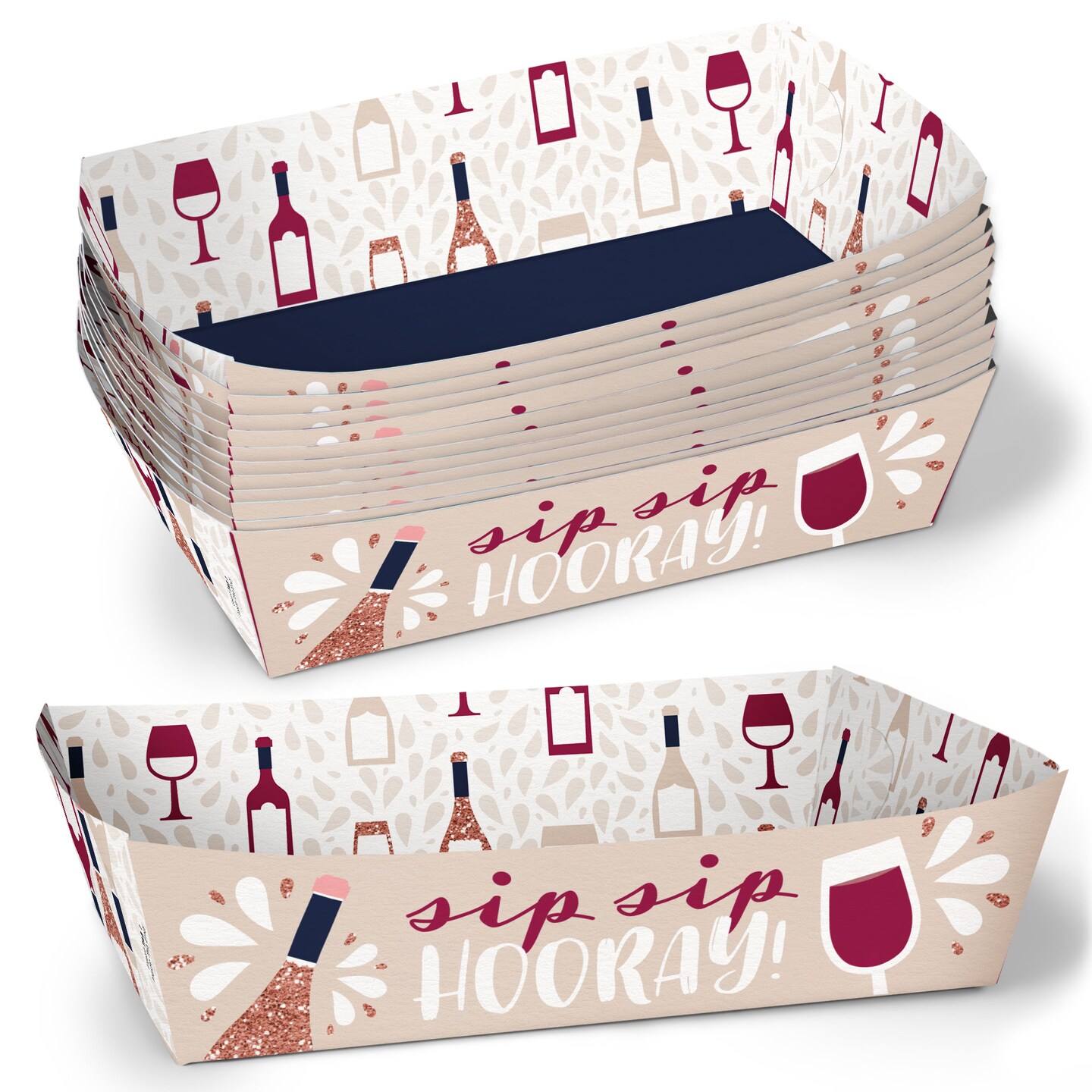 Big Dot of Happiness But First, Wine Party Paper Food Trays, Disposable Food Boats for Birthday Wine Tasting, Double-Sided Paper Meal Holders - 12 Ct