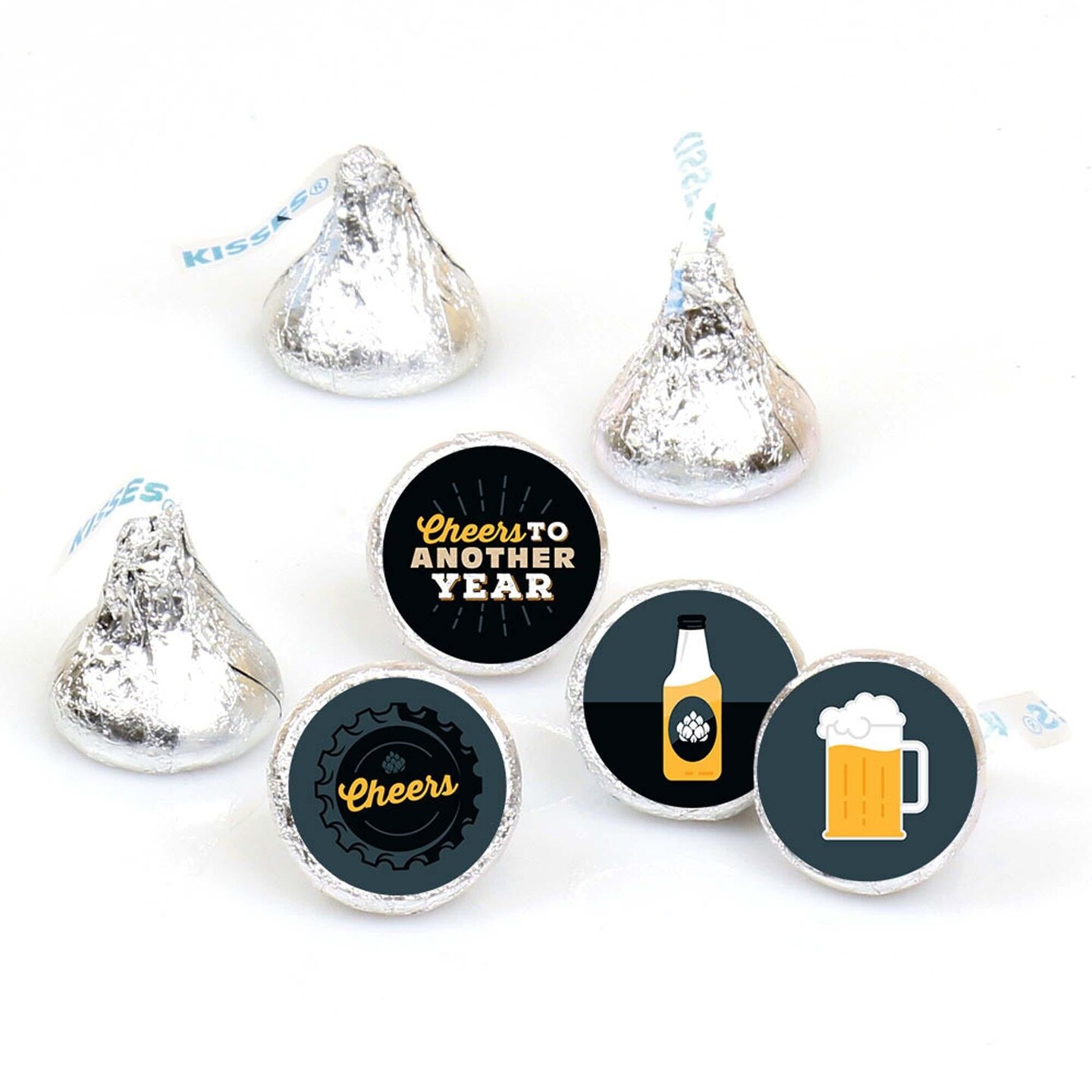 Big Dot of Happiness Cheers and Beers Happy Birthday - Birthday Party Round Candy Sticker Favors - Labels Fits Chocolate Candy (1 sheet of 108)