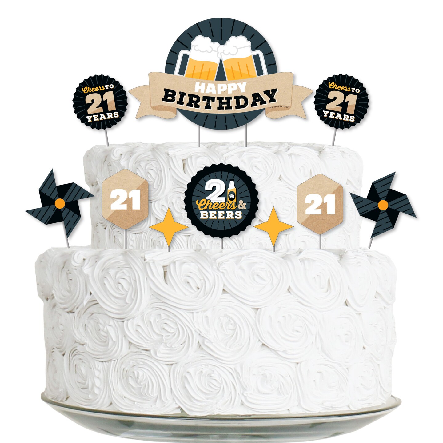 Big Dot of Happiness Cheers and Beers to 21 Years - Birthday Party Cake Decorating Kit - Happy Birthday Cake Topper Set - 11 Pieces