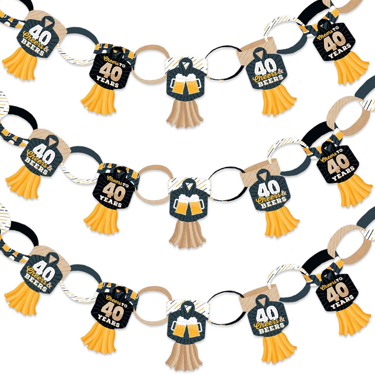 Big Dot of Happiness Cheers and Beers to 40 Years - 90 Chain Links and 30 Paper Tassels Decor Kit- 40th Birthday Party Paper Chains Garland - 21 feet