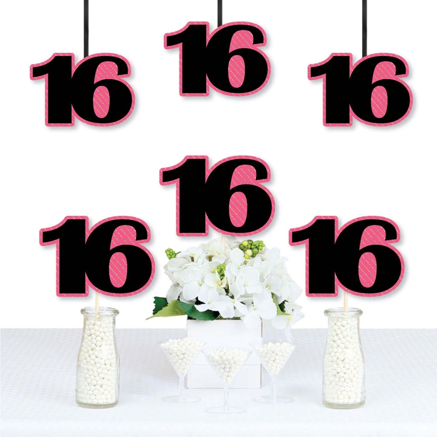 Big Dot of Happiness Chic 16th Birthday - Pink, Black and Gold - Decorations DIY Party Essentials - Set of 20
