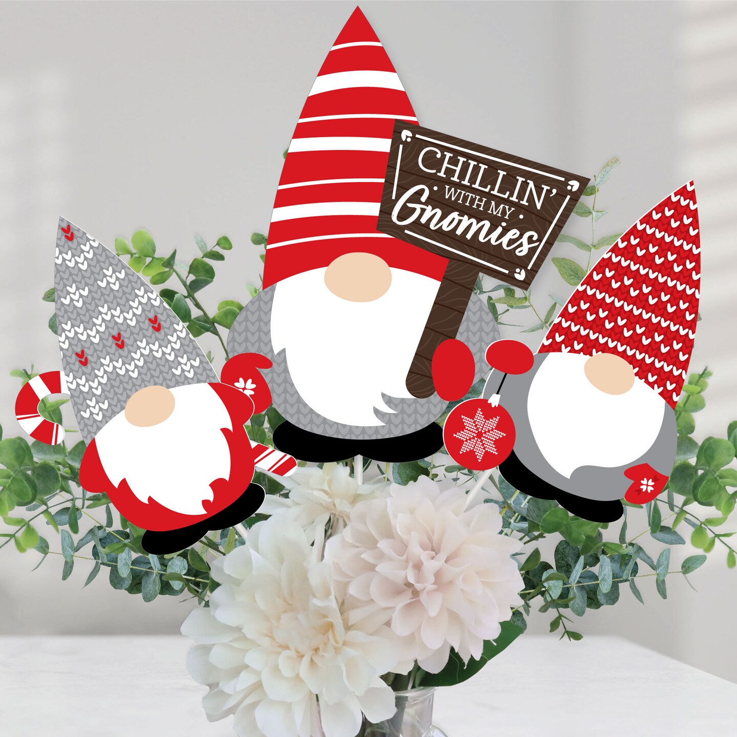 Big Dot of Happiness Christmas Gnomes - Holiday Party Centerpiece Sticks - Table Toppers - Set of 15