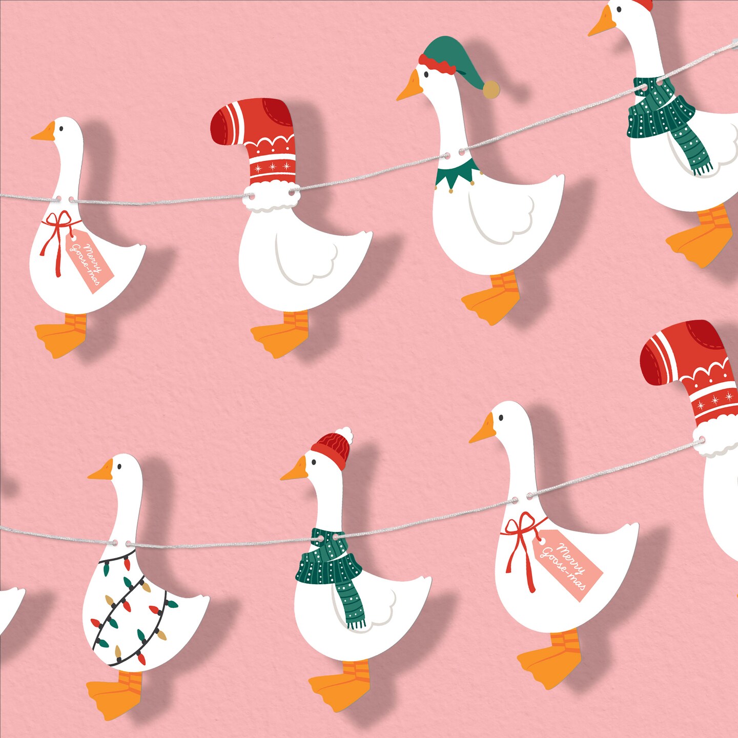 Big Dot of Happiness Christmas Silly Goose Garland Banner, Winter Holiday Party Decorations Backdrop, 30 Feet of Cord, 15 Paper Shapes Double-Sided
