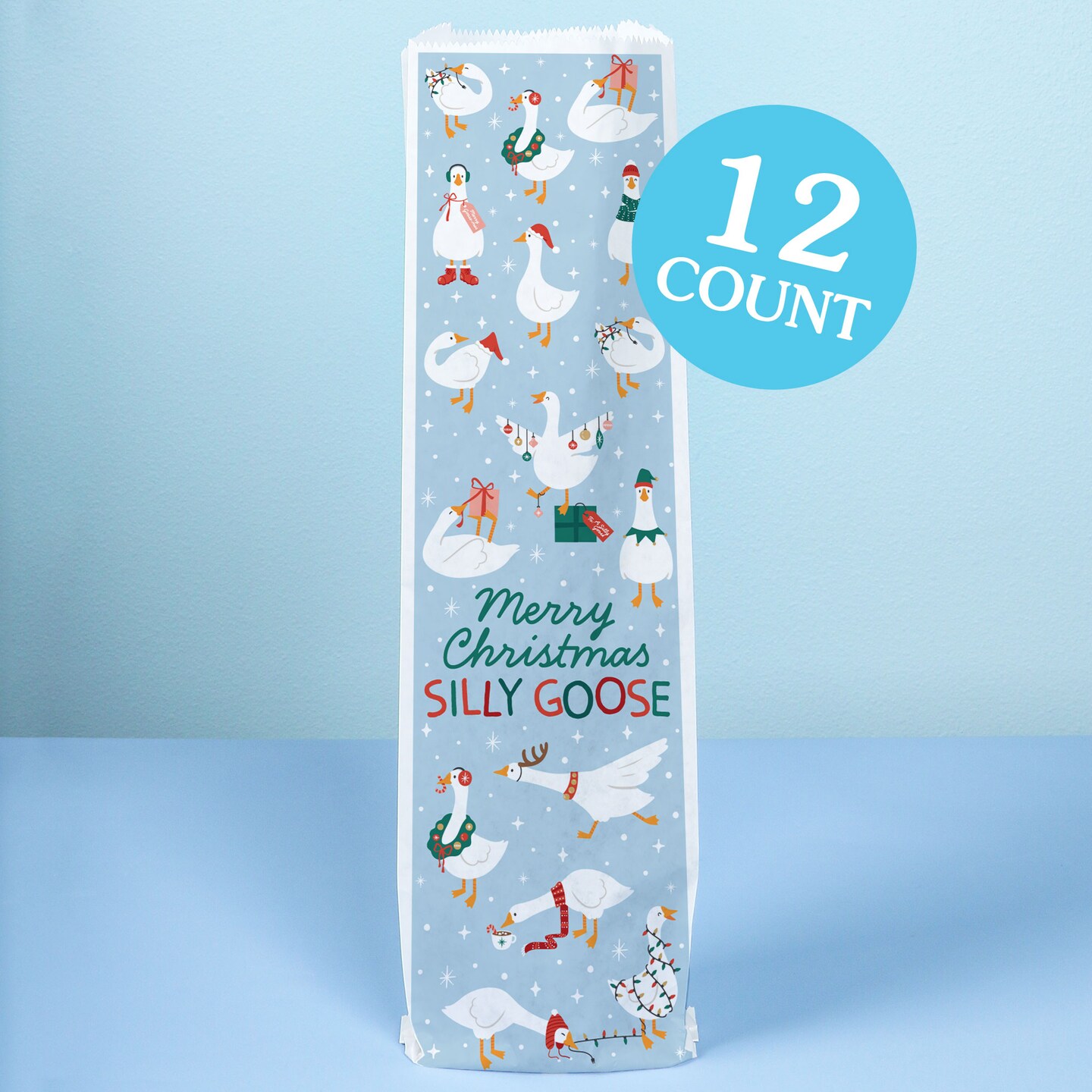 Big Dot of Happiness Christmas Silly Goose Wine Gift Bags, Funny Winter Christmas Thank You Wine Bottle Gift Wrap, Bulk Holiday Paper Bags - 12 ct