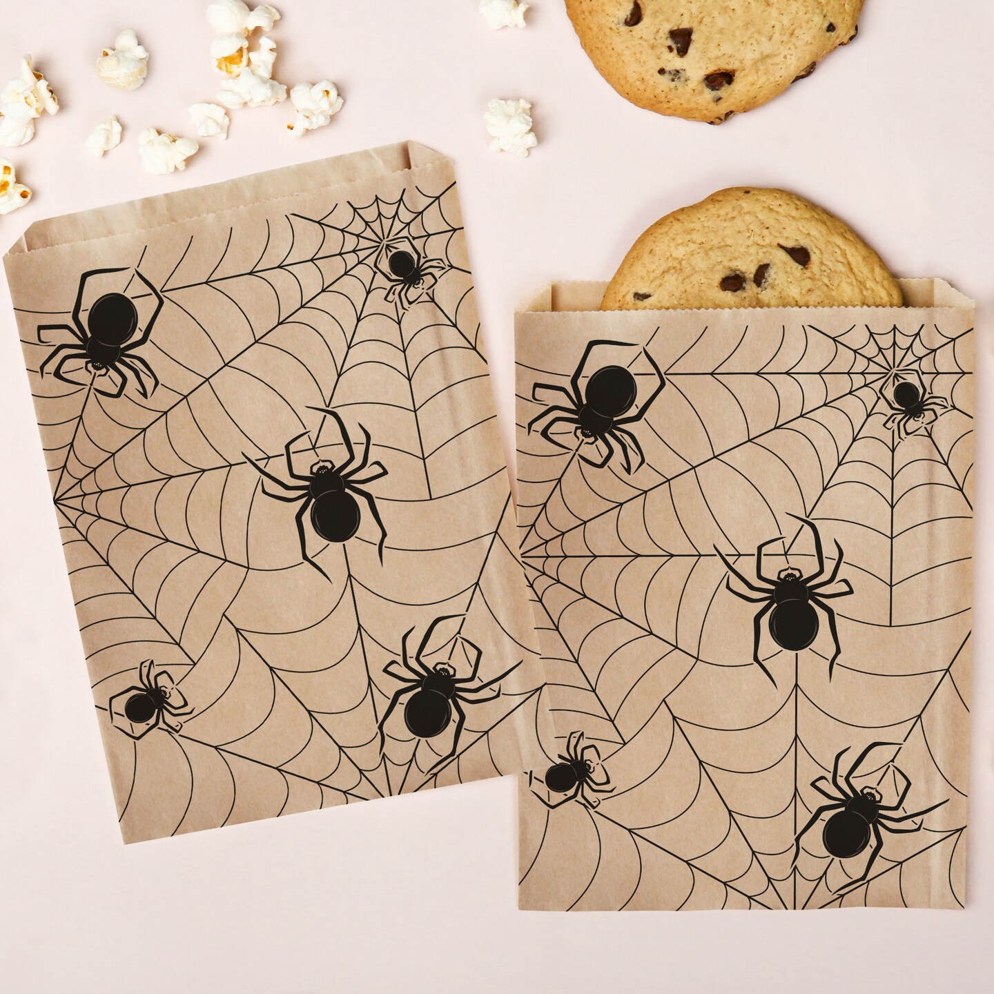 Big Dot of Happiness Creepy Spiders Kraft Brown Paper Treat Bags, Halloween Individual Candy Snack Favors, Greaseproof Sandwich Cookie Bags - 25 Count