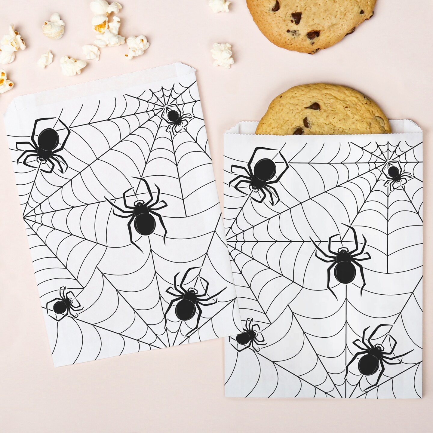 Big Dot of Happiness Creepy Spiders White Paper Treat Bags, Halloween Party Individual Candy Snack Favors, Greaseproof Sandwich Cookie Bags - 25 Count