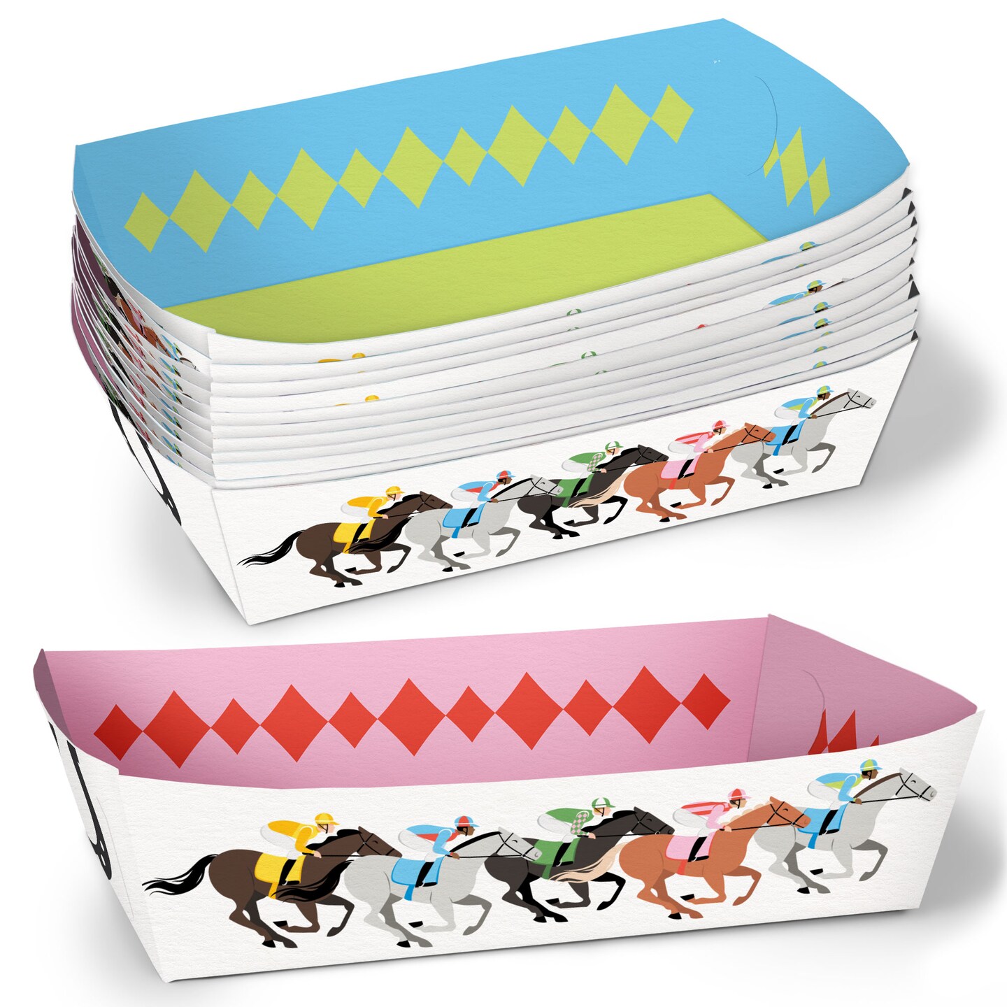 Big Dot of Happiness Derby Horse Race Food Trays, Disposable Food Boats for Kentucky Horse Racing Themed Party Double-Sided Paper Meal Holders - 12 Ct