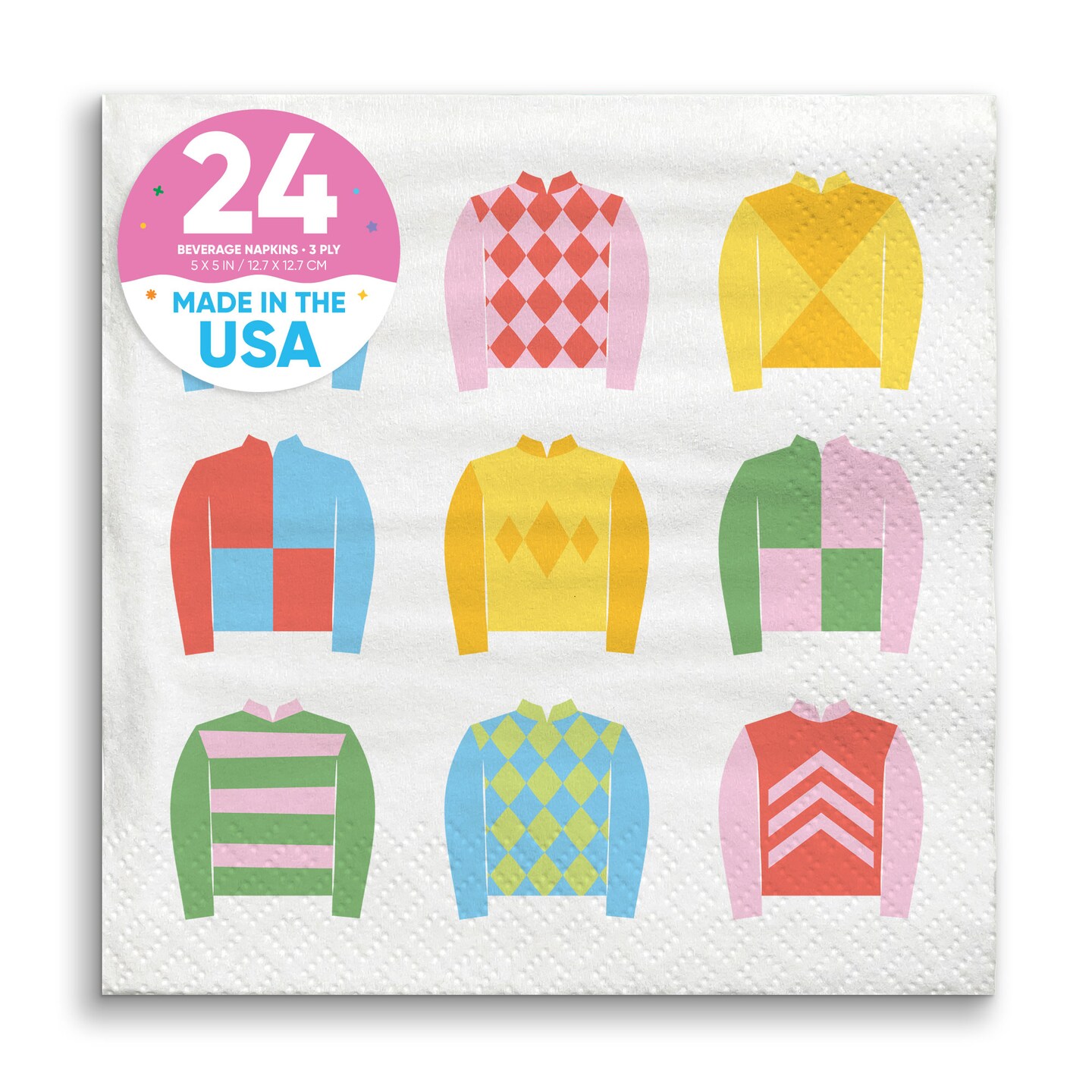 Big Dot of Happiness Derby Horse Race Napkins, Colorful Jockey Silks Kentucky Party Decor, White 3-Ply Paper Beverage Cocktail Napkins - 24 Count
