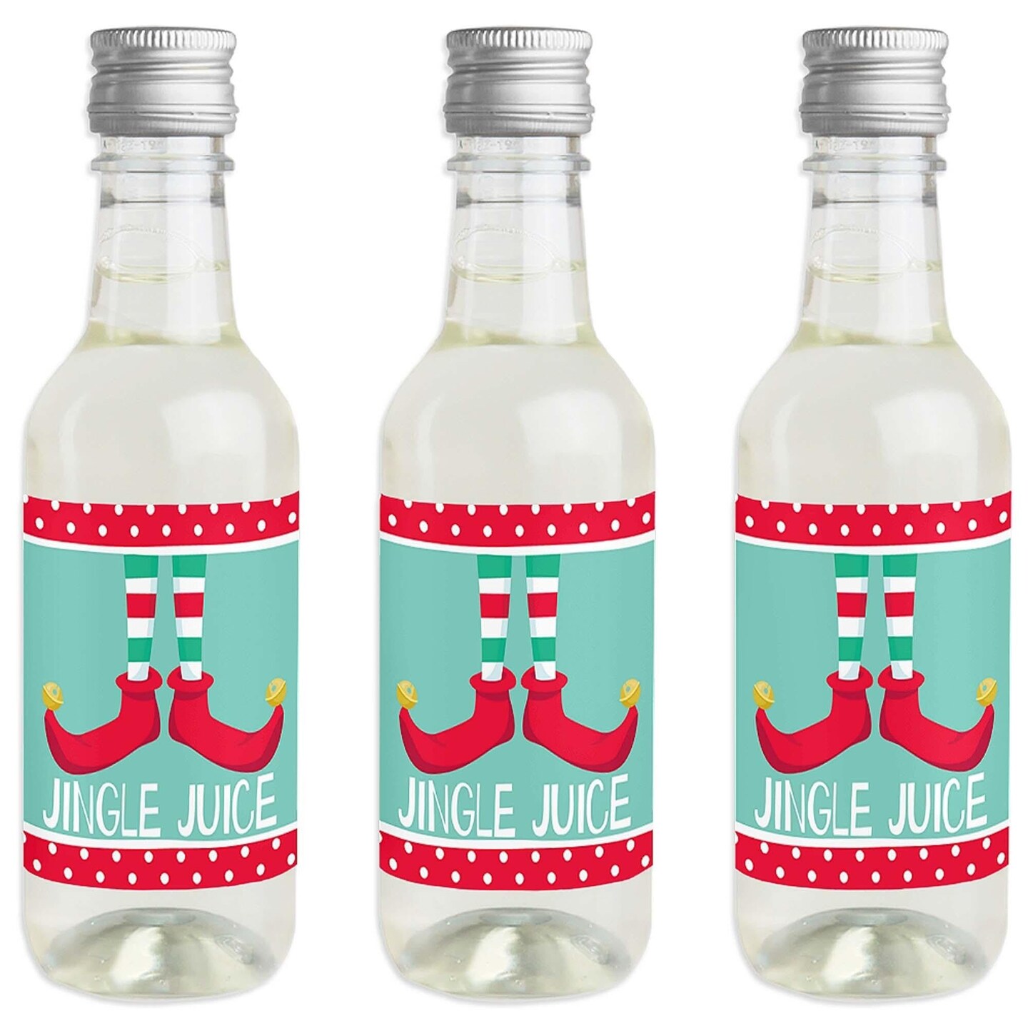 Big Dot of Happiness Elf Squad - Mini Wine and Champagne Bottle Label Stickers - Elf Christmas Party Favor Gift for Women and Men - Set of 16