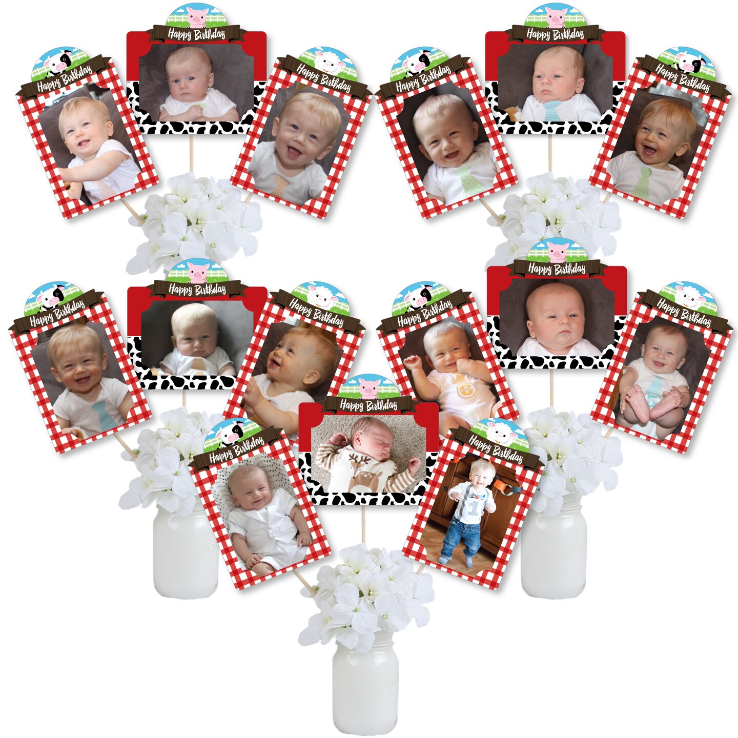Big Dot of Happiness Farm Animals - Barnyard Birthday Party Picture Centerpiece Sticks - Photo Table Toppers - 15 Pieces