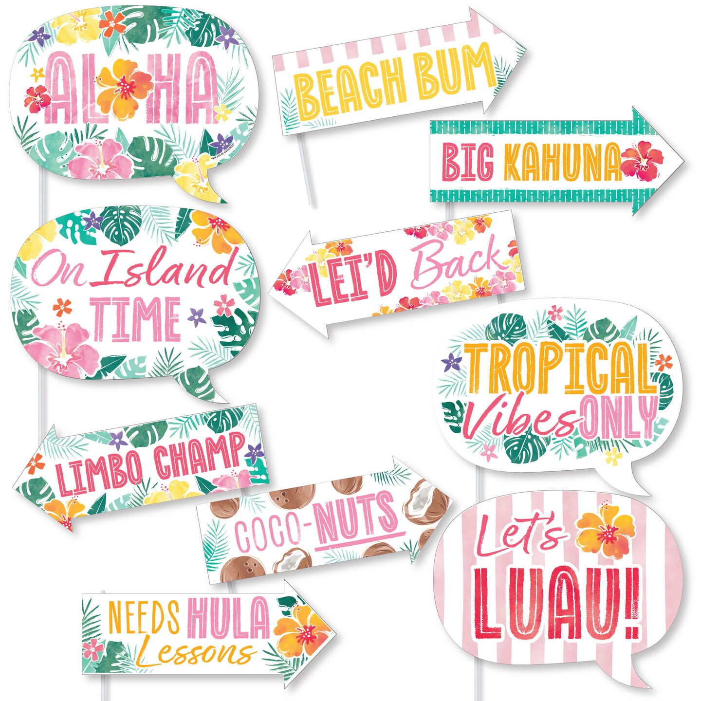 Big Dot of Happiness Funny Hawaiian Luau Photo Booth Props Kit, Tropical Floral Decor, Island-Themed Birthday Supplies - 10 Count Selfie Prop Sticks