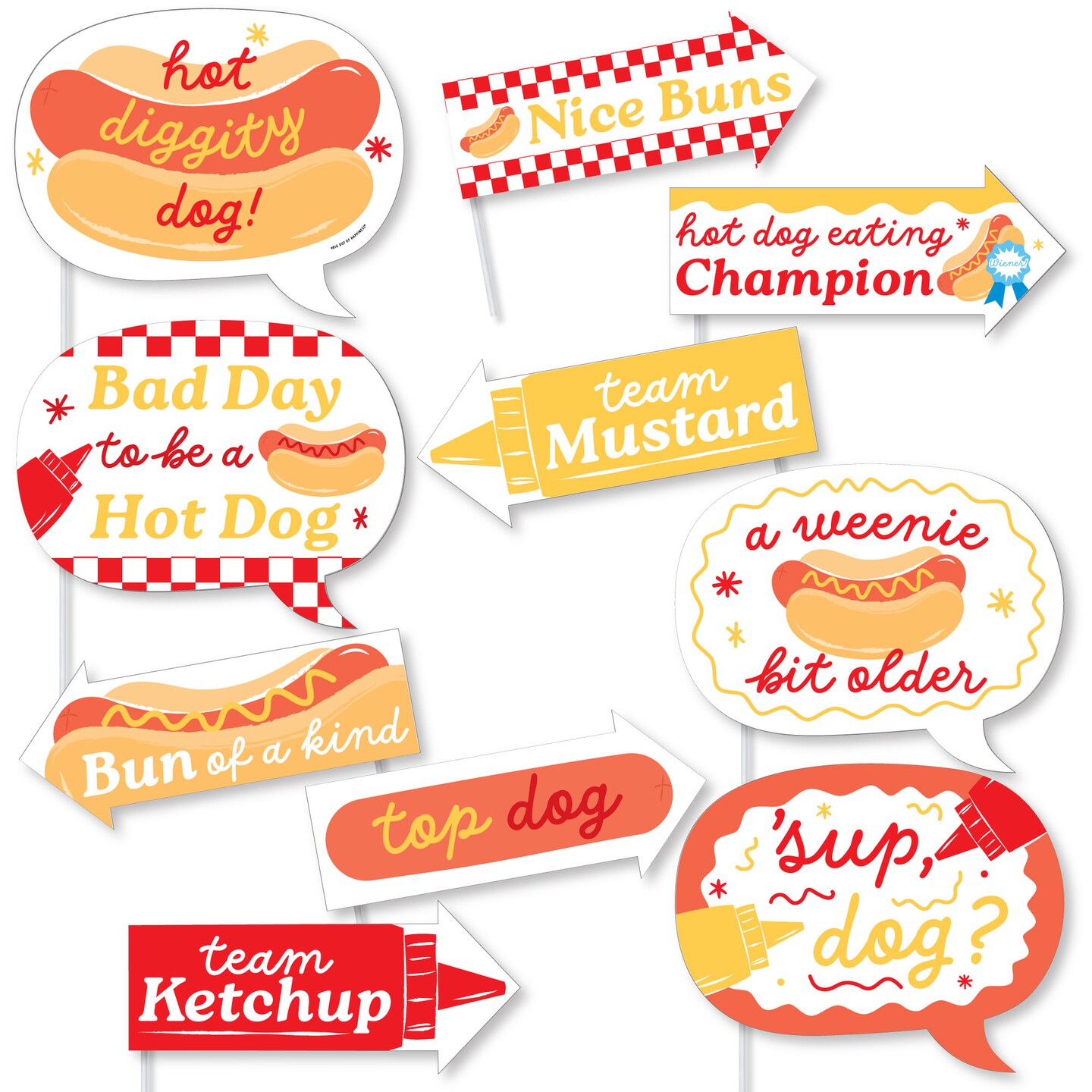 Big Dot of Happiness Funny Hot Dog Birthday Photo Booth Props Kit, Hot Dog-Themed Sayings, A Weenie Bit Older Party, Summer BBQ Picnic - 10 Count