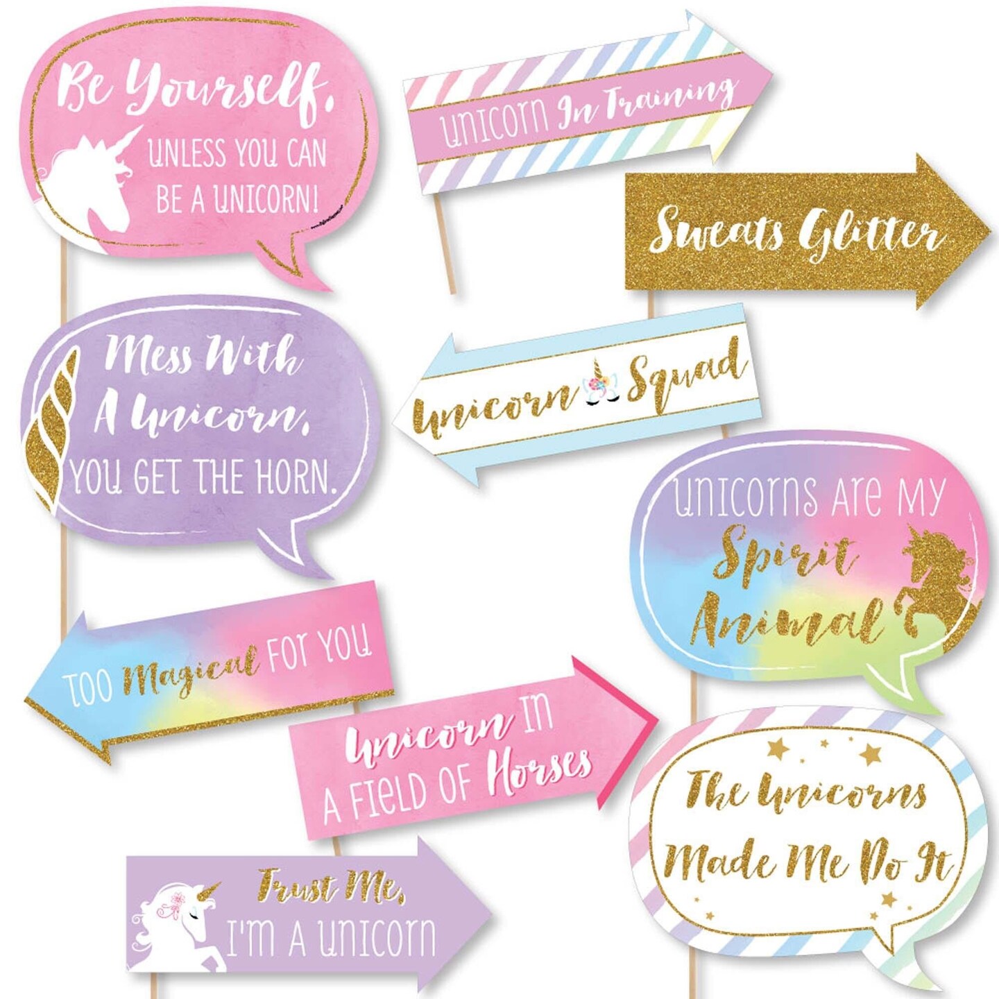 Big Dot of Happiness Funny Rainbow Unicorn - Magical Unicorn Baby Shower or Birthday Party Photo Booth Props Kit - 10 Piece