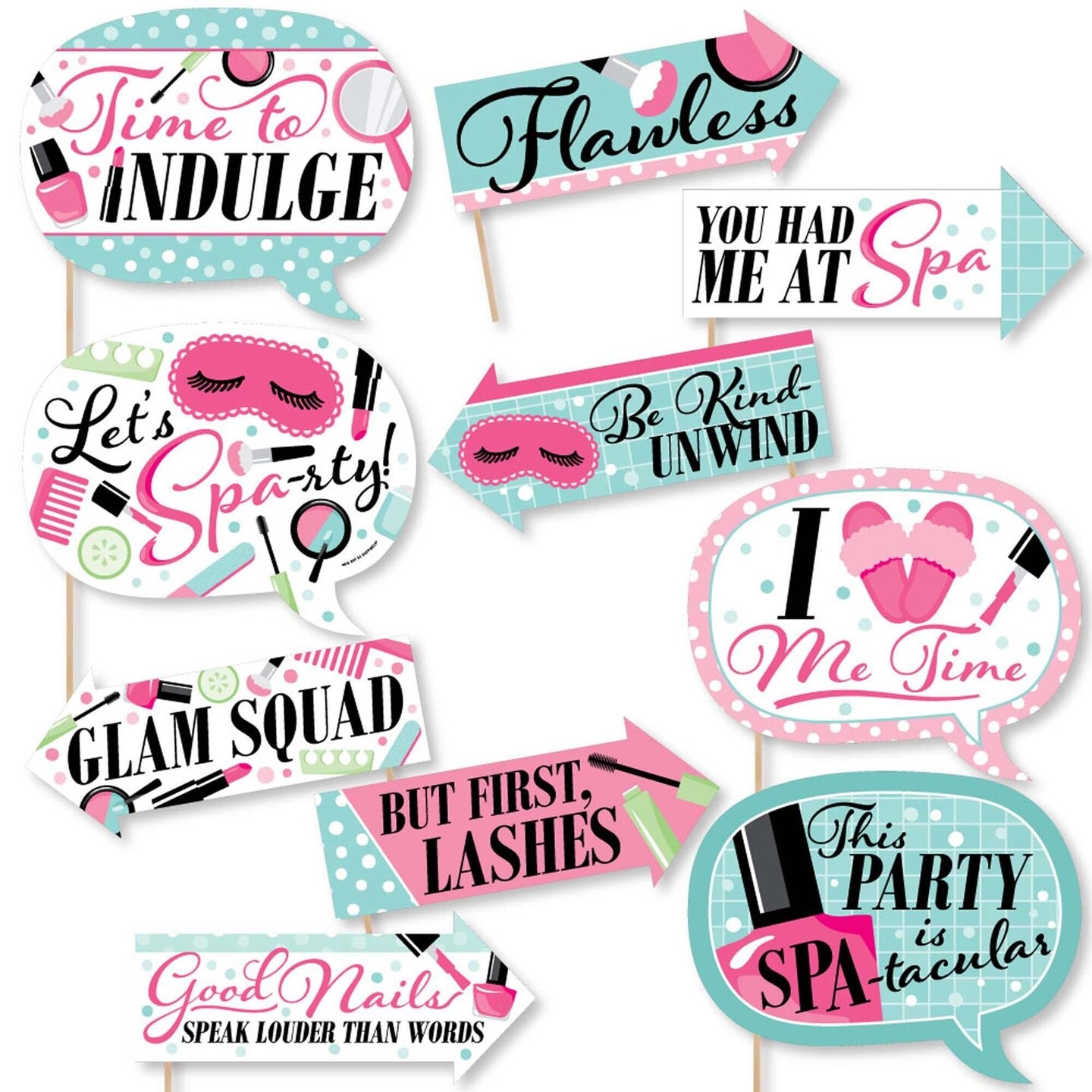 Big Dot of Happiness Funny Spa Day - Girls Makeup Party Photo Booth Props Kit - 10 Piece