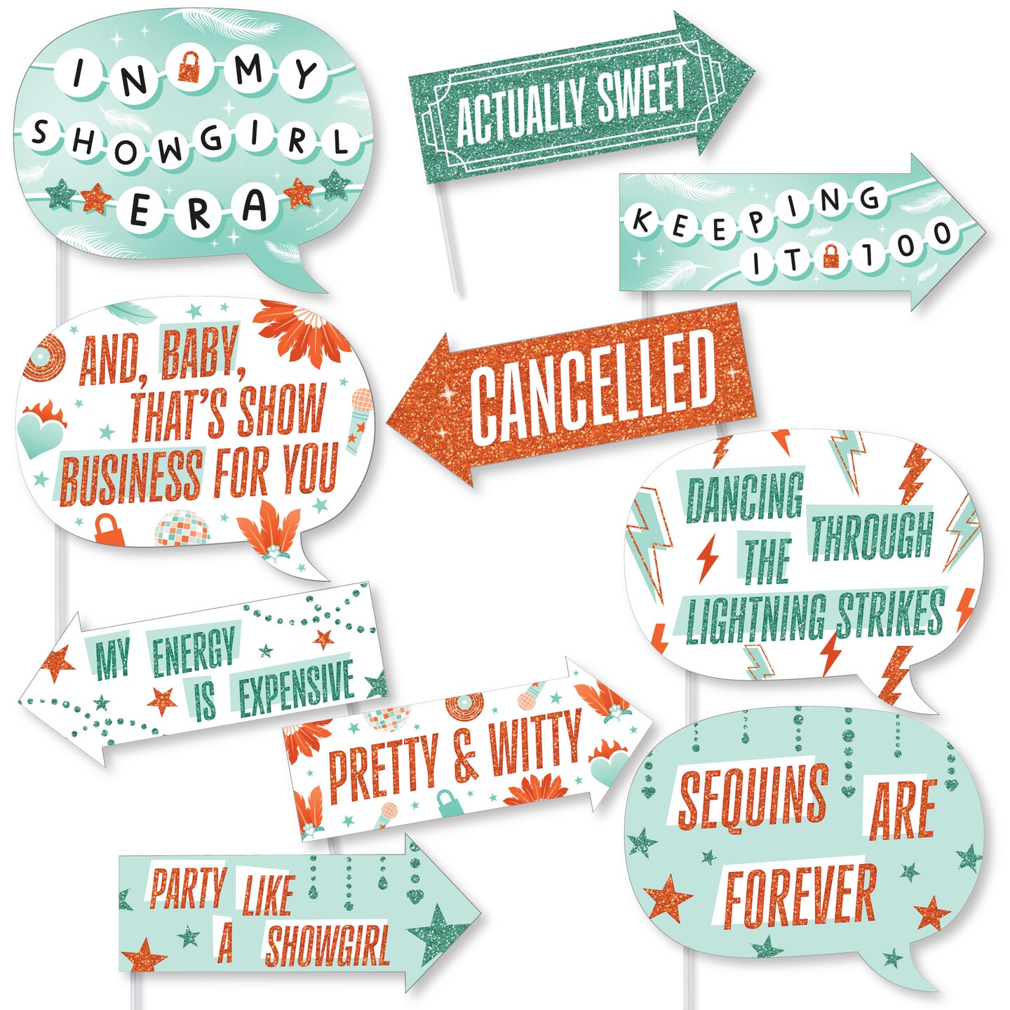 Big Dot of Happiness Funny The Life of a Party Photo Booth Props Kit Showgirl Era Popstar Decor, Orange & Green Supplies - 10 Count Selfie Prop Sticks