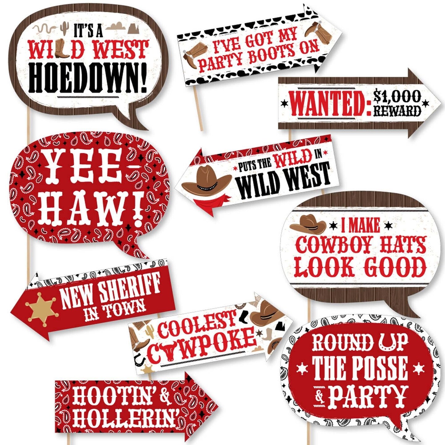 Big Dot of Happiness Funny Western Hoedown - Wild West Cowboy Party Photo Booth Props Kit - 10 Piece
