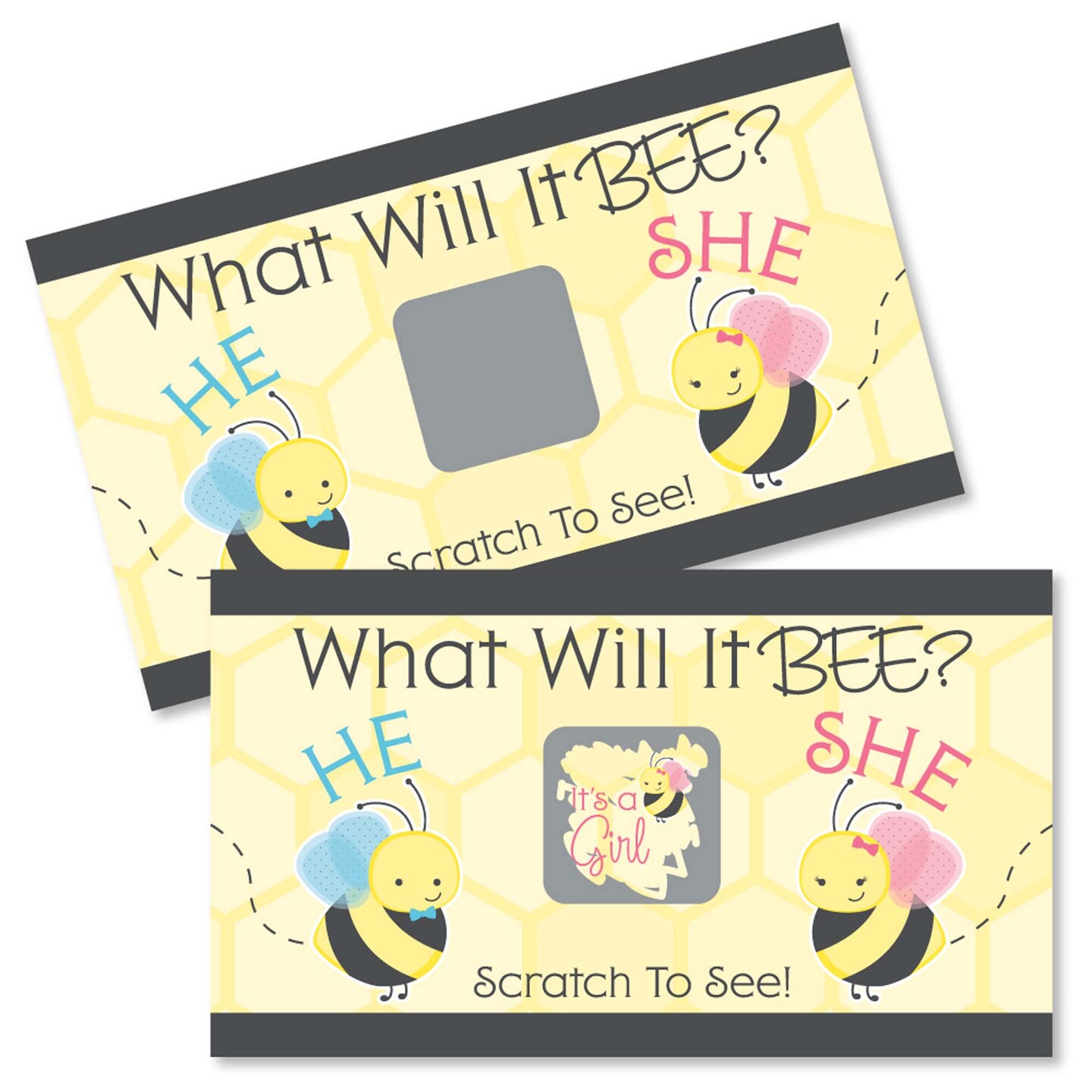 Big Dot of Happiness Girl Bee Gender Reveal - What Will It Bee Gender Reveal Scratch Off Cards - Baby Shower Game - 22 Count