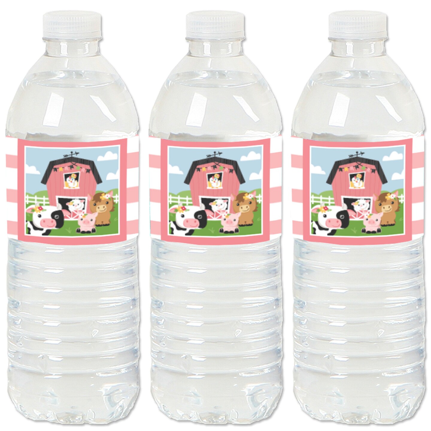 Big Dot of Happiness Girl Farm Animals - Pink Barnyard Baby Shower or Birthday Party Water Bottle Sticker Labels - Set of 20