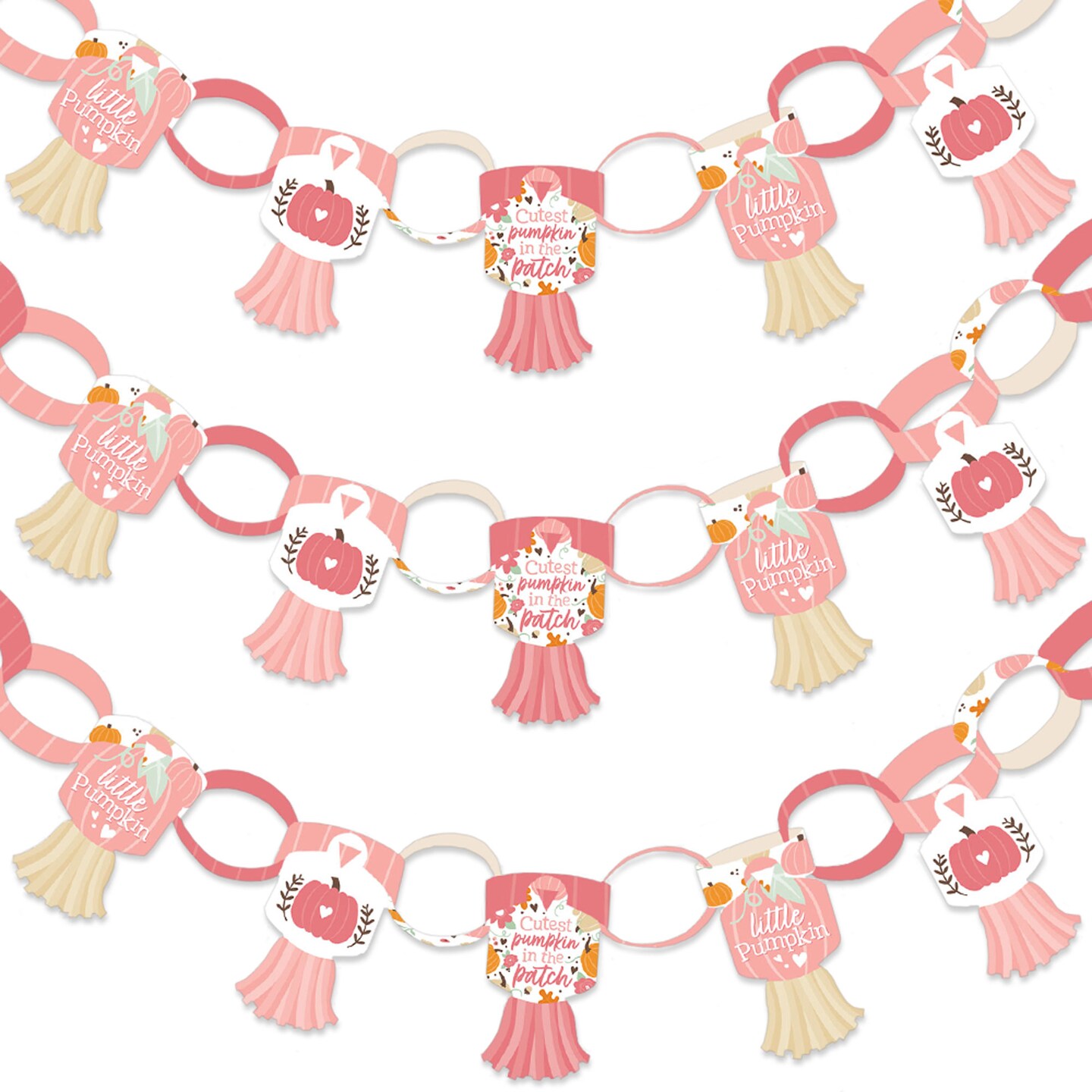 Big Dot of Happiness Girl Little Pumpkin - Decoration Kit - Fall Birthday Party or Baby Shower Paper Chains Garland - 21 feet