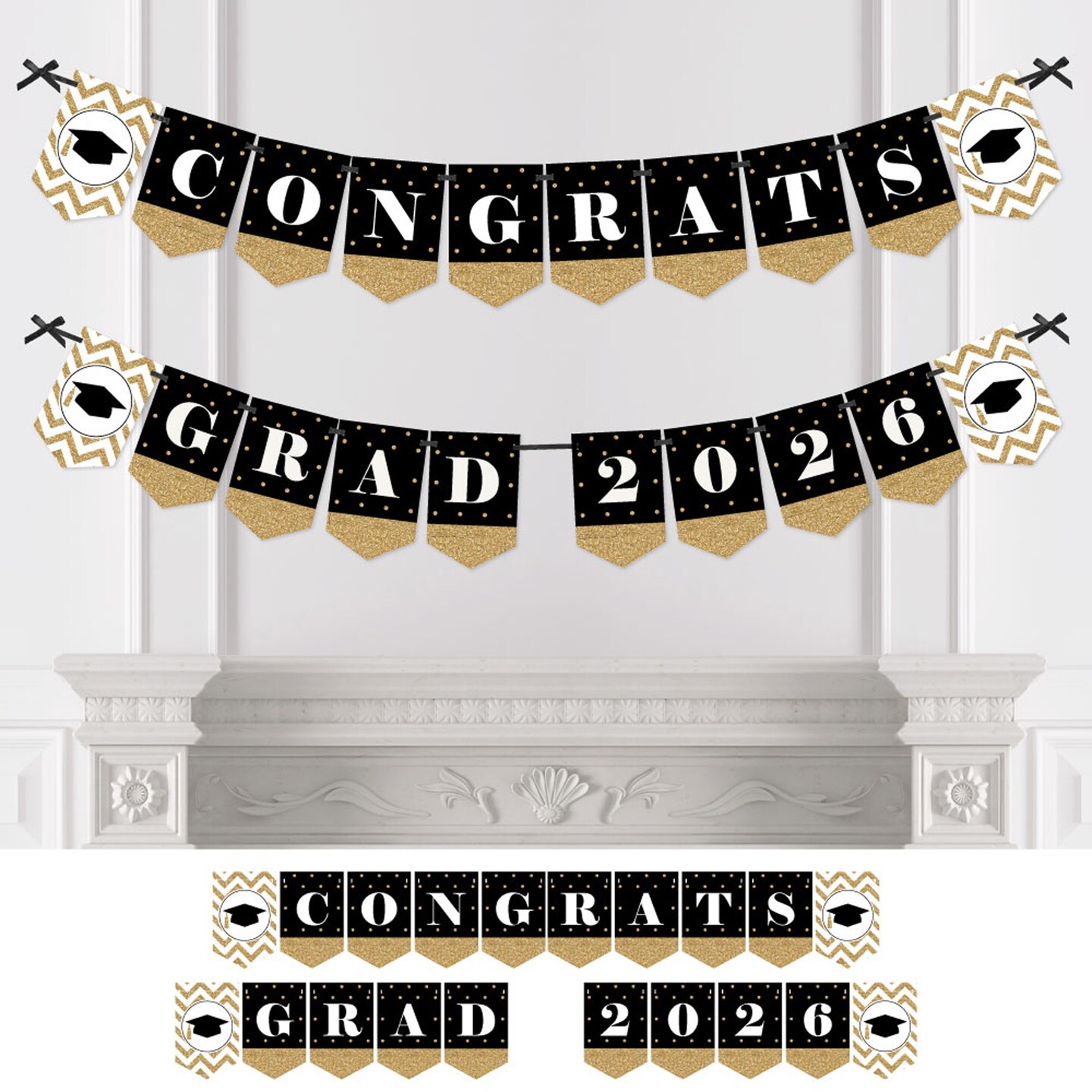 Big Dot of Happiness Gold Graduation Bunting Banner - Party Decorations - Congrats Grad 2026