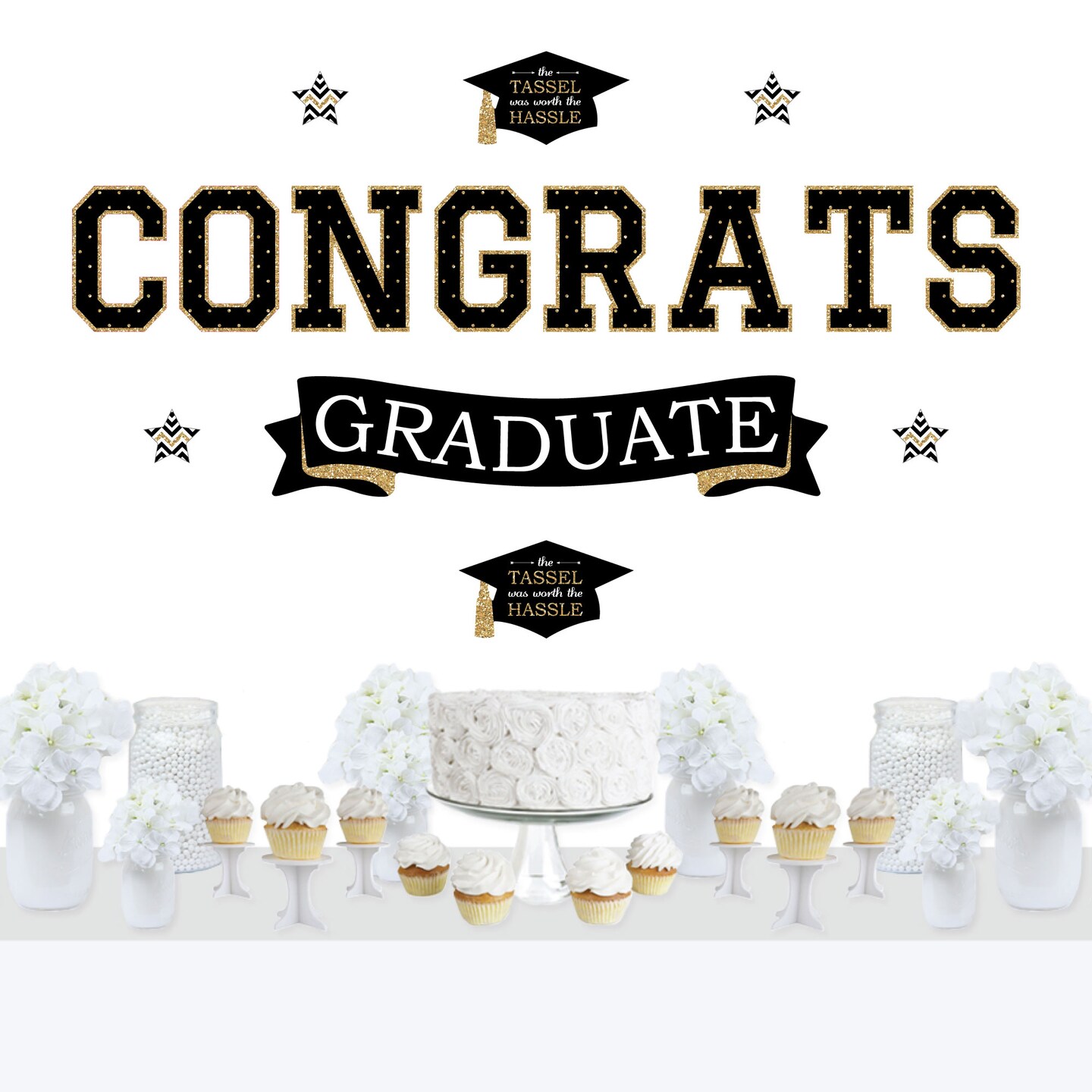 Big Dot of Happiness Gold Graduation Party Photo Backdrop - Wall Decals
