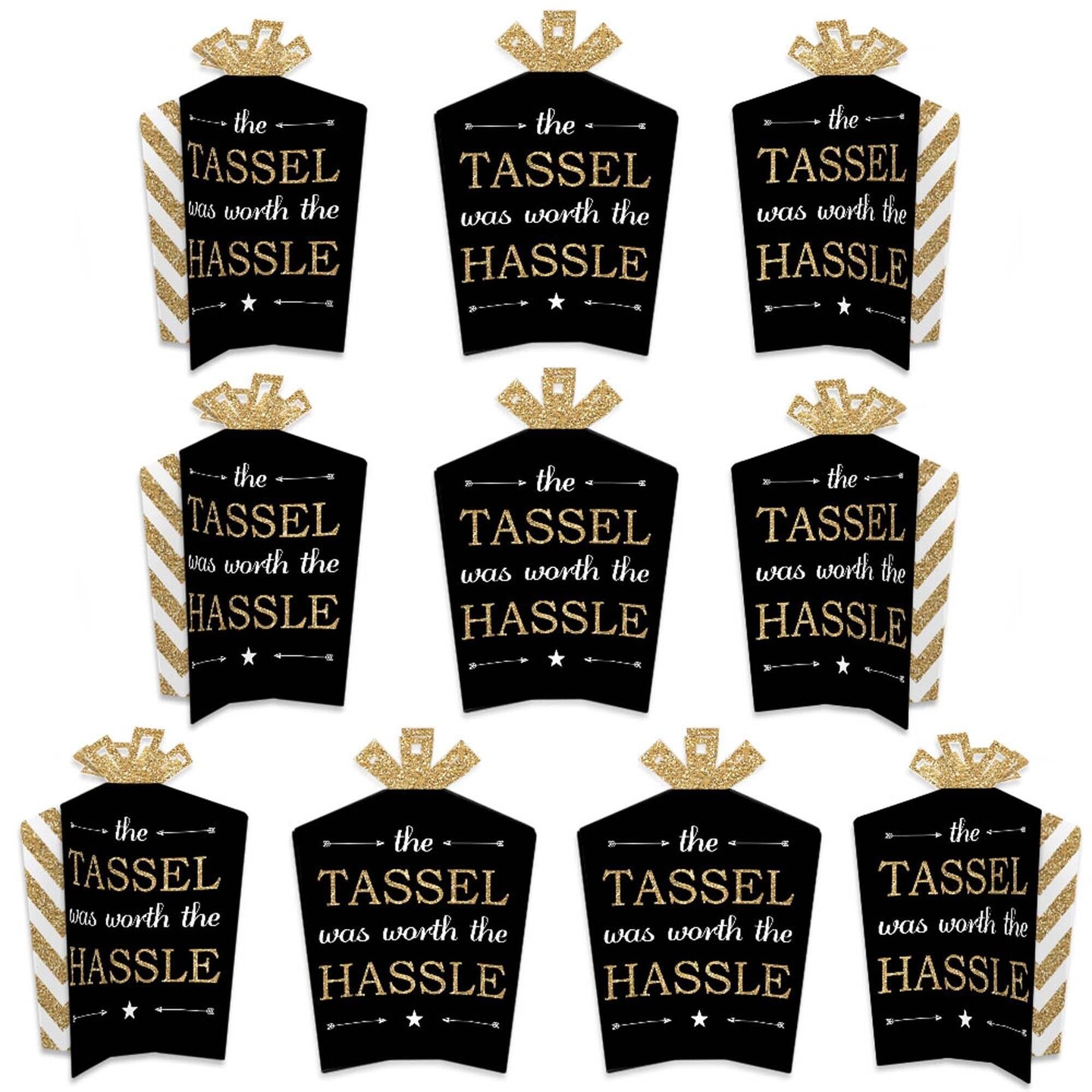 Big Dot of Happiness Gold - Tassel Worth The Hassle - Table Decorations - Graduation Party Fold and Flare Centerpieces - 10 Count