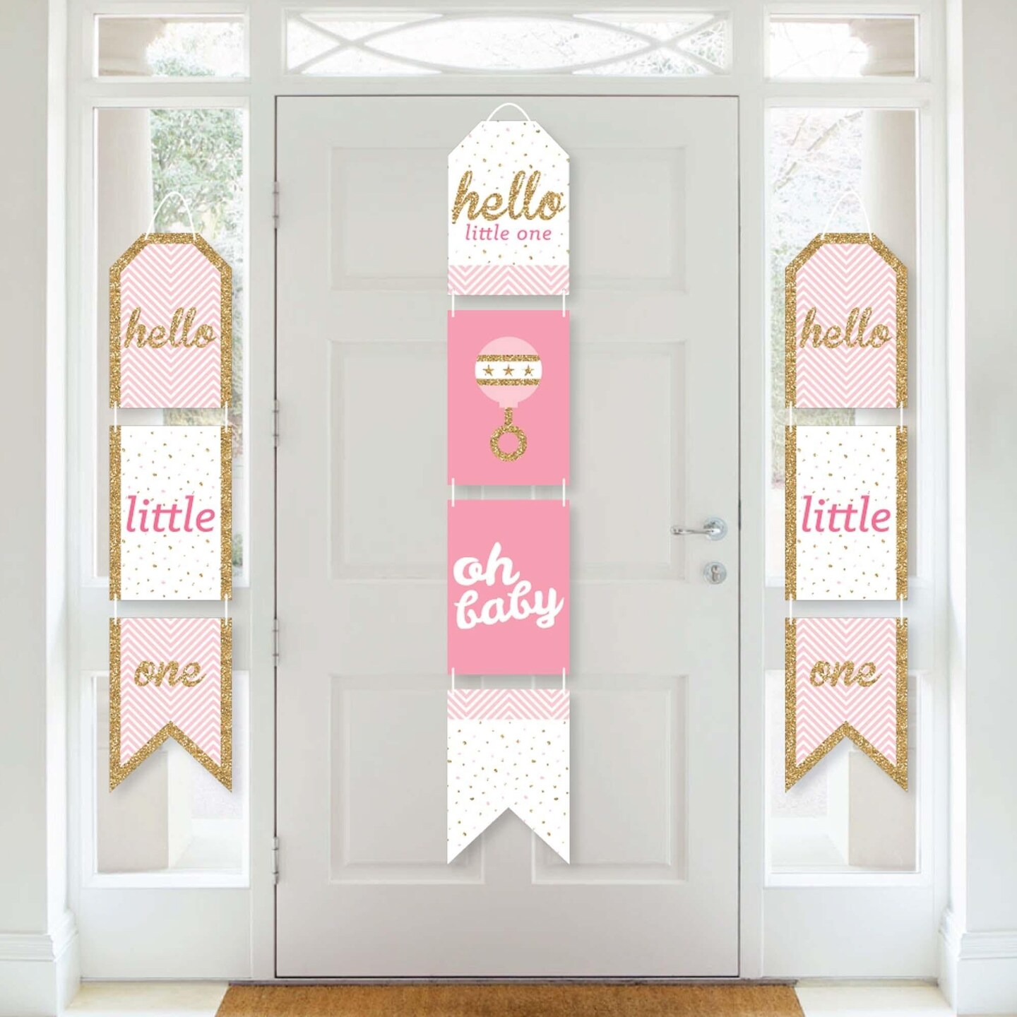 Big Dot of Happiness Hello Little One - Pink and Gold - Hanging Vertical Paper Door Banners - Girl Baby Shower Wall Decoration Kit - Indoor Door Decor