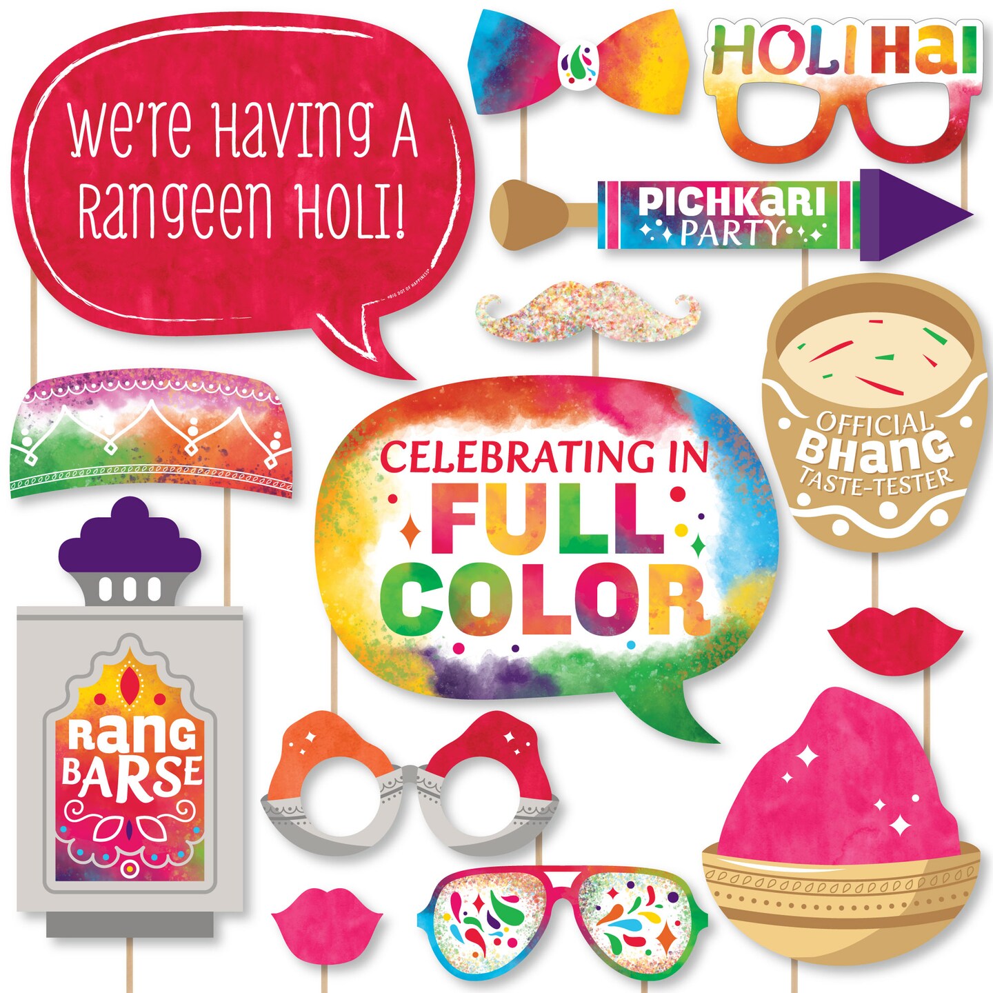 Big Dot of Happiness Holi Hai - Festival of Colors Party Photo Booth Props Kit - 20 Count