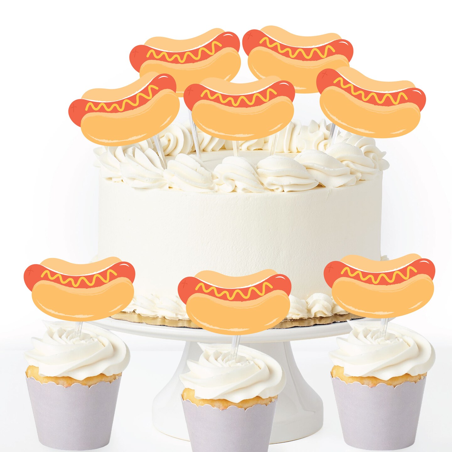 Big Dot of Happiness Hot Dog Dessert Cupcake Toppers, Summer Birthday BBQ Picnic Party Decor, Hot Dog Treat Picks - Set of 24