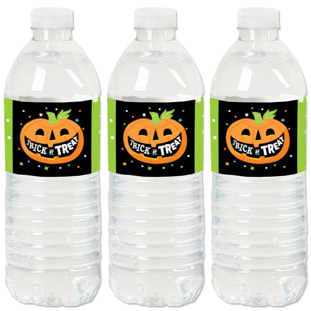 Big Dot of Happiness Jack-O'-Lantern Halloween - Kids Halloween Party Water Bottle Sticker Labels - Set of 20