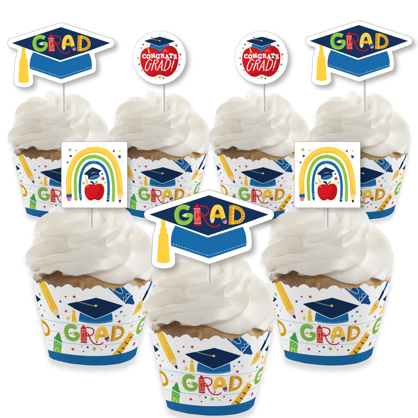 Big Dot of Happiness Kindergarten Grad - Cupcake Decoration - 4K Preschool Kids Graduation Party Cupcake Wrappers and Treat Picks Kit - Set of 24